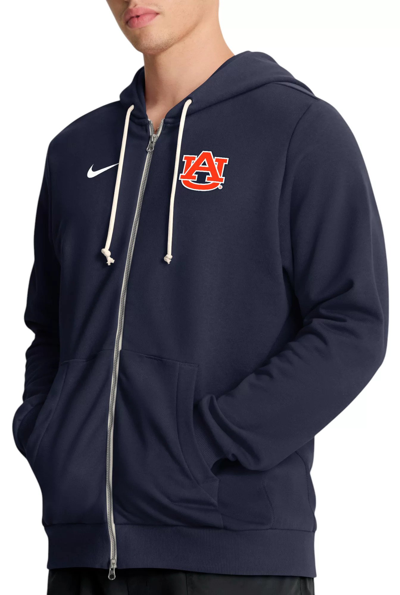 Design Long sleeve, full-zip, hooded sweatshirt Front split pockets Adjustable drawcord Brushed fleece is soft and cozy Standard fit Official Team Issue Product Style and Team Spirit Screen-printed team logos Swoosh™ design trademark Technology Integrated Dri-FIT® moisture-wicking technology Additional Details Machine washable Officially licensed collegiate product