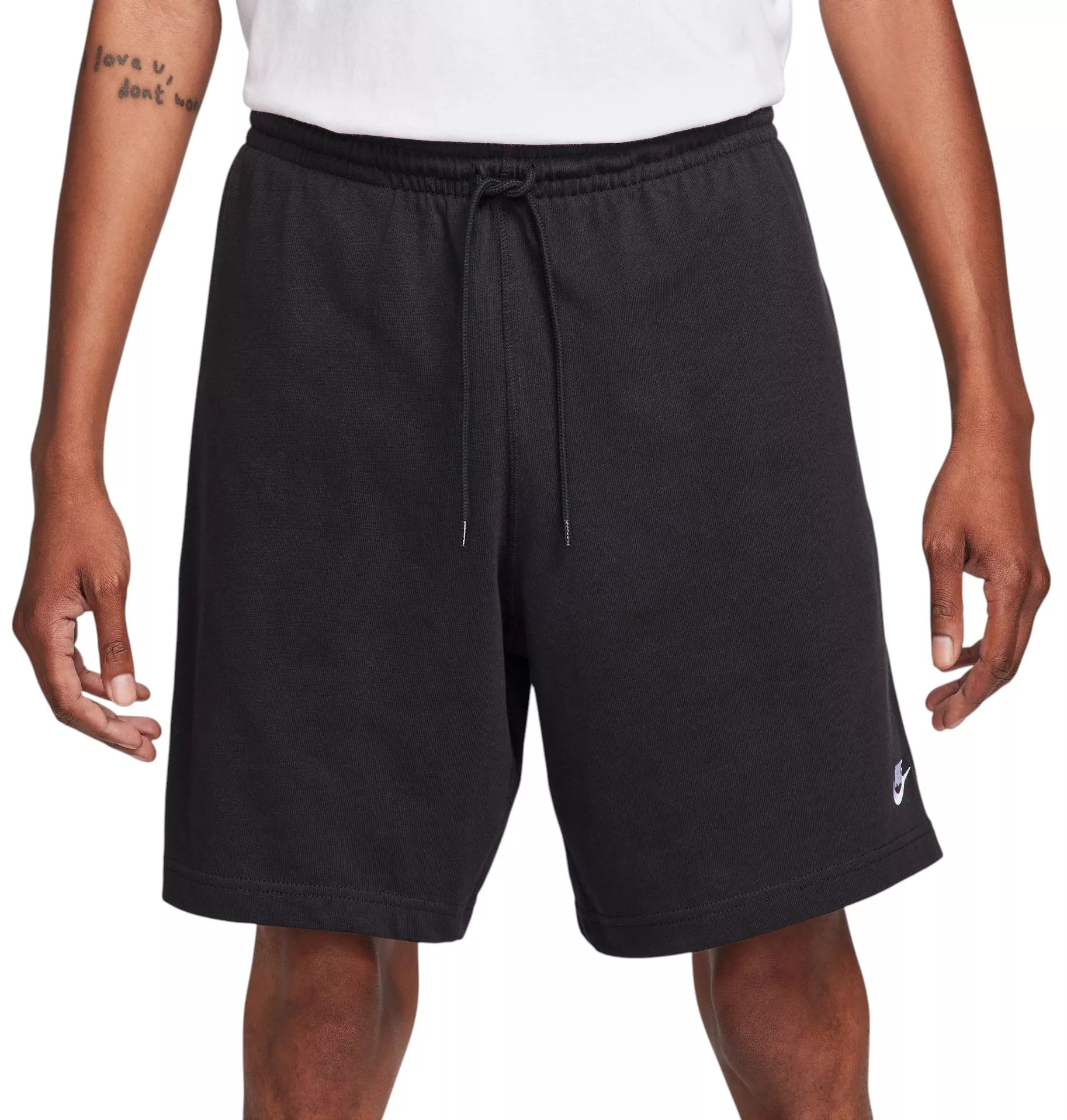 Looking for lightweight, breathable comfort in the sun? Pull on a pair of these shorts from the Nike Club collection. The above-the-knee cut is designed to feel relaxed through the seat and thighs for casual, daily wear. An embroidered Nike Futura logo brings a subtle sport-inspired finish. Fit & Design: Relaxed fit shorts Designed to feel relaxed through the seat and thighs for casual, daily wear Soft knit cotton feels comfy and breathable for everyday comfort Soft elastic waist with outer drawcord helps you cinch up the right fit Embroidered Nike Futura logo completes the look