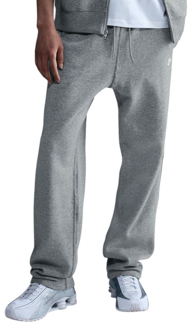 Clean meets casual with these open-hem sweatpants. Our midweight brushed fleece feels extra soft on the inside and smooth on the outside, helping you stay cozy while keeping its structured shape. Fit & Design Standard fit pants Straight leg has an open hem to rest over your shoes Elastic waistband with external drawcord Snap closure back welt pocket provides easy storage Hand pockets fit most phones Embroidered Nike Futura logo