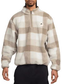 Transition your wardrobe to the winter with this Sherpa upgrade to a Nike Club classic. The relaxed silhouette and holiday-ready plaid combine with Nike Therma-FIT technology to become a new cold-weather favorite. Fit & Design Relaxed fit jacket The silhouette is designed to feel roomy through the chest, body and sleeves for easy movement and layering High neck with 1/2 zip Sleeveless Side zipper pockets with internal kangaroo pocket secure your essentials Canvas Nike Futura logo and embossed zipper pull give the top a branded finish Technology Nike Therma-FIT technology helps manage your body’s natural heat to help keep you warm in cold-weather conditions Additional Details Machine wash