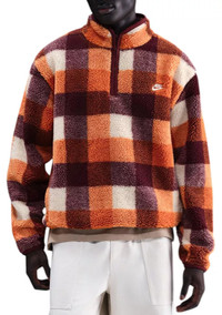 Transition your wardrobe to the winter with this Sherpa upgrade to a Nike Club classic. The relaxed silhouette and holiday-ready plaid combine with Nike Therma-FIT technology to become a new cold-weather favorite. Fit & Design Relaxed fit jacket The silhouette is designed to feel roomy through the chest, body and sleeves for easy movement and layering High neck with 1/2 zip Sleeveless Side zipper pockets with internal kangaroo pocket secure your essentials Canvas Nike Futura logo and embossed zipper pull give the top a branded finish Technology Nike Therma-FIT technology helps manage your body’s natural heat to help keep you warm in cold-weather conditions Additional Details Machine wash