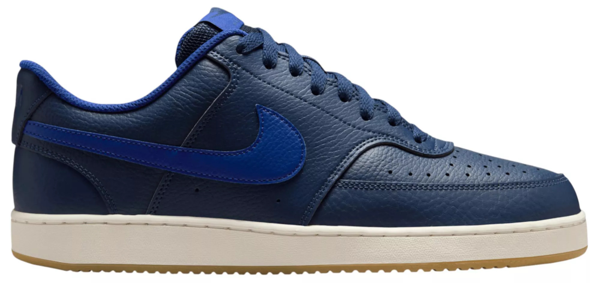 So you're in love with the classic look of '80s basketball, but you've got a thing for the fast-paced culture of today's game. Meet the new Nike Court Vision Low. Its crisp upper and stitched overlays are inspired by the hook shot of old-school basketball while its super plush, low-cut collar adds a sleek look that's comfortable day in and day out. Design Retro Hoops Inspiration: Using a combination of real and synthetic leather, the construction uses materials that echo mid-1980s basketball shoes Sleek and Simple Details: The thick laces, original pivot circles on the sole and retro Swoosh design keep it sleek and simple so you can wear them anywhere Leather and synthetic leather in the upper Stitched-down Swoosh design In-Shoe Comfort Perforations on toe and sides Durability & Traction Tried and True: The vulcanized construction fuses the outsole to midsole for a streamlined look that's durable and comfortable