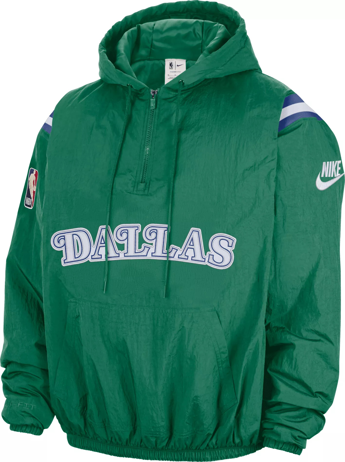Nike Men's Dallas Mavericks Hardwood Classics Green Wordmark Woven Half-Zip Hoodie