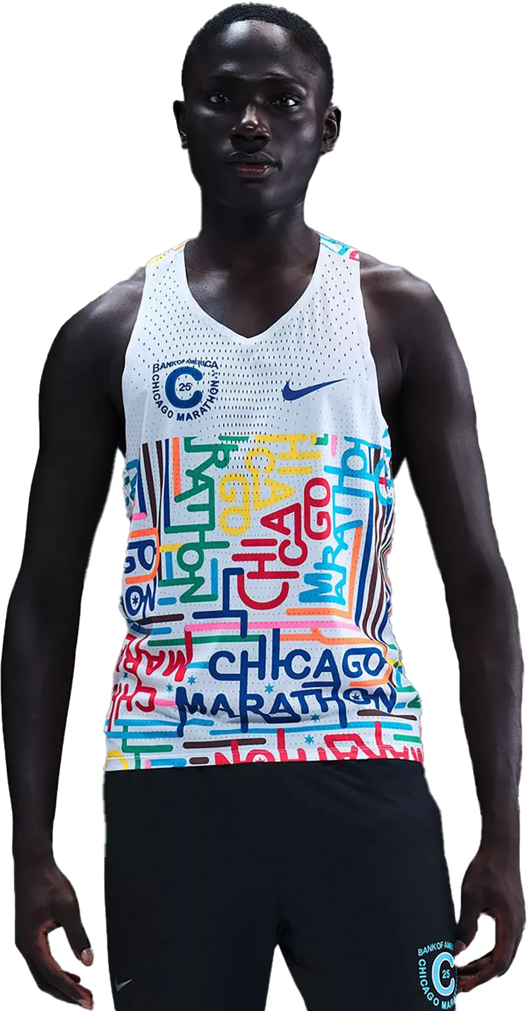 This running singlet celebrates the 2025 Chicago Marathon. Its slim-fitting design and advanced sweat-management tech help keep you ultra-cool and dry. Fit & Design: Slim fit singlet Knit fabric feels smooth and light Vent holes to provide elite breathability where you need it most A front-to-back side seam helps reduce chafing Shape of the back armhole helps promote natural movement Technology: Nike Dri-FIT ADV levels up our sweat-wicking technology with advanced cooling and zones of breathability to help you stay dry and comfortable AeroSwift is Nike's pinnacle racing gear made for speed and distraction-free coverage Additional Details: Machine wash Imported