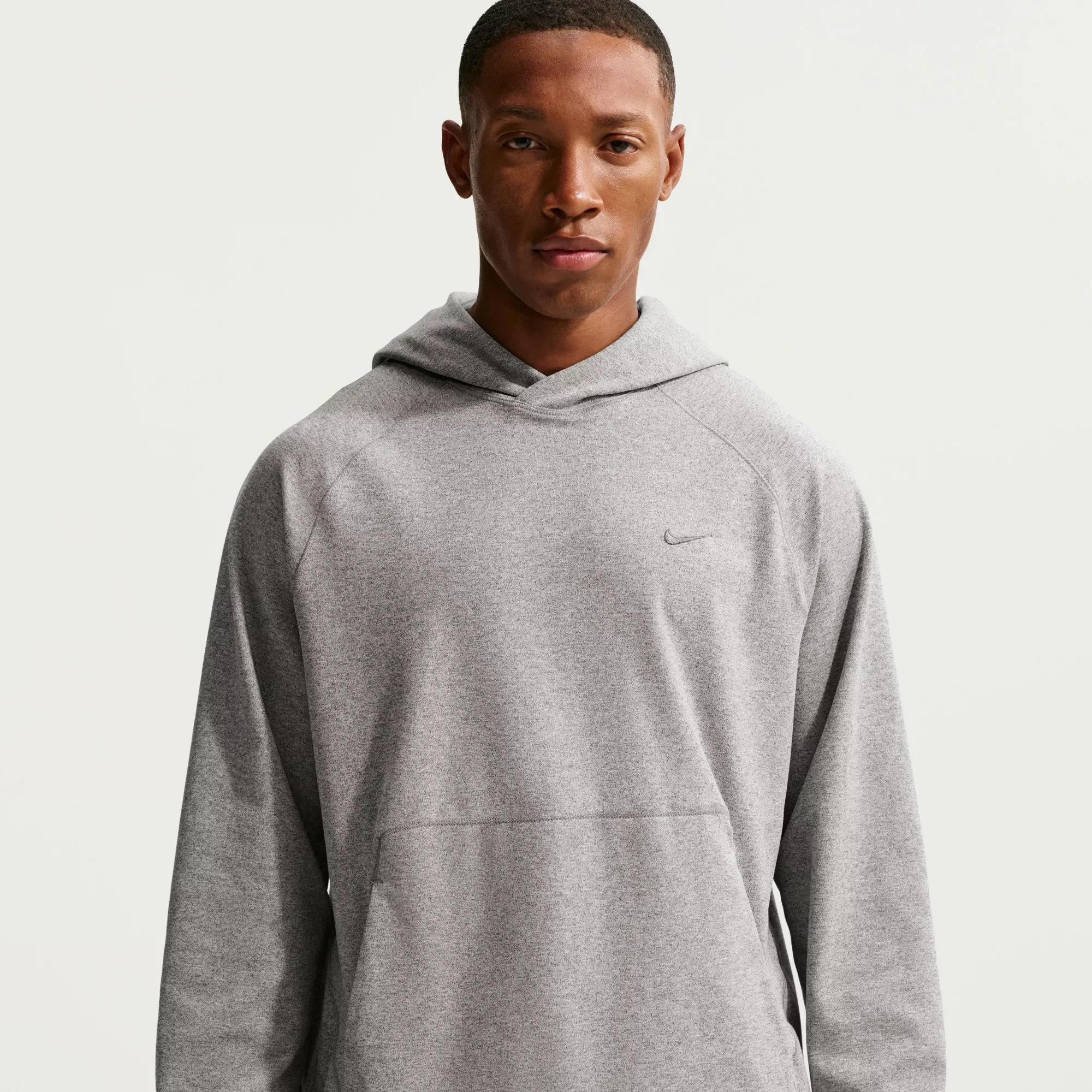Move through your workout and into your day in this versatile hoodie. Named for its superfine yarns and tight-knit construction, Nike's stretchy NanoKnit fabric is lightweight and ultrasoft. It's paired with sweat-wicking tech and UV protection to make this layer a performance essential. Fit & Design Standard fit NanoKnit fabric is lightweight, ultrasoft, and stretchy Hooded design Front pouch pocket contains a smaller media pocket for added storage Embroidered underarm eyelets add ventilation to help you stay cool Modified raglan-style sleeves allow for a full range of motion Low-profile seams add softness Technology Nike Dri-FIT technology moves sweat away from your skin for quicker evaporation, helping you stay dry and comfortable UV protection helps protect you from the sun's harmful rays Additional Details: Provides UVA and UVB protection from the sun in the areas covered by the garment To protect exposed areas, the use of good quality sunscreen is recommended