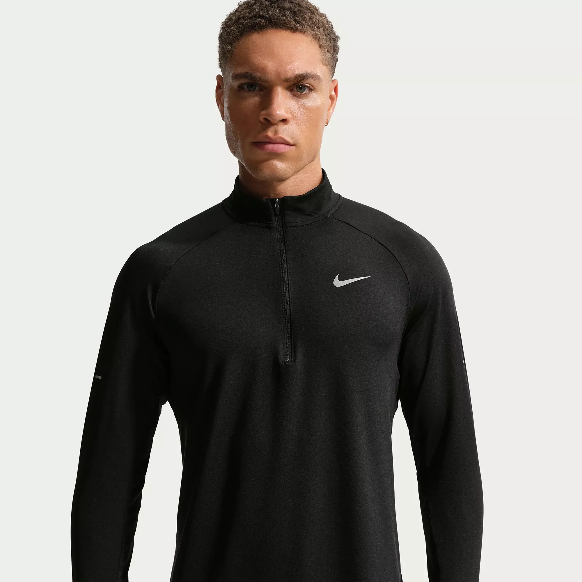 Fit & Design: Standard fit 1/2 zip design Stretchy peached knit fabric Reflective Swoosh logo Reflective pills Technology: Nike Dri-FIT technology moves sweat away from your skin for quicker evaporation, helping you stay dry and comfortable Provides UVA and UVB protection from the sun only in the areas covered by the garment Additional Details: Machine wash Imported