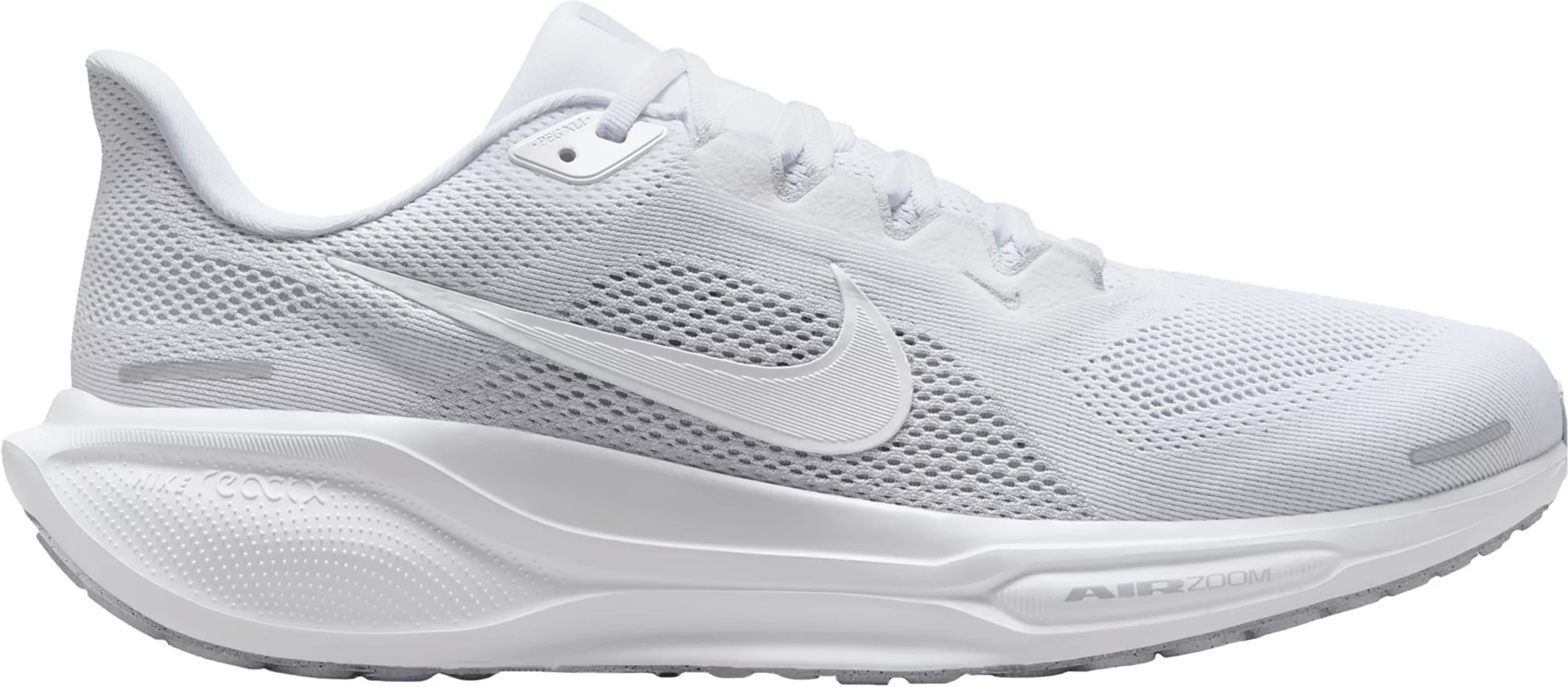 Experience the ultimate combination of comfort and performance with the men's Pegasus 41 running shoes. Featuring an upgraded breathable engineered mesh upper and an all-new ReactX foam midsole, these shoes are designed to provide an energized ride with increased breathability and reduced weight. The signature waffle-inspired rubber outsole ensures exceptional traction and flexibility, making them perfect for road running. Design: Upgraded breathable engineered mesh upper Improved engineered mesh on the upper decreases weight and increases breathability Plush collar tongue and sockliner for a secure and comfortable fit MR-10 Last for a consistent fit (same as Pegasus 40) In-Shoe Comfort: ReactX foam midsole surrounds forefoot and heel Air Zoom units for an energized ride All-new ReactX foam midsole is 13% more responsive than previous React technology Durability & Traction: Signature waffle-inspired rubber outsole for traction and flexibility Additional Details: ReactX foam is engineered to reduce its carbon footprint by at least 43% in a pair of midsoles due to reduced manufacturing process energy compared to prior React foam Weight: Approx. 297 g/10.4 oz (Men's US 10) Heel-to-toe drop: 10 mm