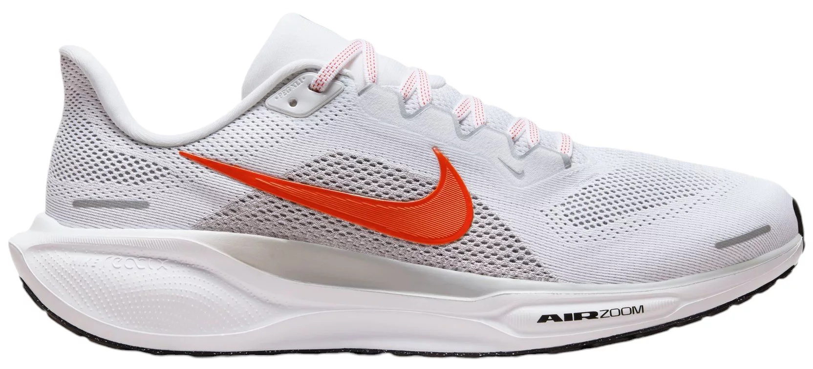 Experience the ultimate combination of comfort and performance with the men's Pegasus 41 running shoes. Featuring an upgraded breathable engineered mesh upper and an all-new ReactX foam midsole, these shoes are designed to provide an energized ride with increased breathability and reduced weight. The signature waffle-inspired rubber outsole ensures exceptional traction and flexibility, making them perfect for road running. Design: Upgraded breathable engineered mesh upper Improved engineered mesh on the upper decreases weight and increases breathability Plush collar tongue and sockliner for a secure and comfortable fit MR-10 Last for a consistent fit (same as Pegasus 40) In-Shoe Comfort: ReactX foam midsole surrounds forefoot and heel Air Zoom units for an energized ride All-new ReactX foam midsole is 13% more responsive than previous React technology Durability & Traction: Signature waffle-inspired rubber outsole for traction and flexibility Additional Details: ReactX foam is engineered to reduce its carbon footprint by at least 43% in a pair of midsoles due to reduced manufacturing process energy compared to prior React foam Weight: Approx. 297 g/10.4 oz (Men's US 10) Heel-to-toe drop: 10 mm
