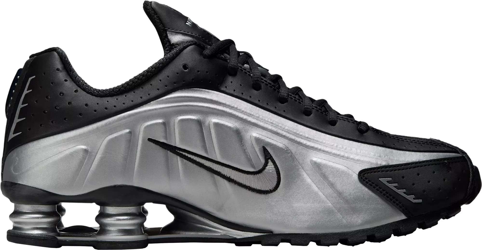 A recrafted version of the early 2000s icon, the Nike Shox R4 replicates the original with its futuristic design lines and performance-like cushioning. Nike Shox columns in the heel distribute weight to maximize comfort while providing a bold look on the streets. Design Synthetic and textile upper is soft and durable In-Shoe Comfort Nike Shox technology features resilient, flexible columns that compress and regain shape for outstanding cushioning Laser perforations throughout provide ventilation Foam midsole Durability & Traction Modified, circular Waffle outsole offers great traction Rubber outsole