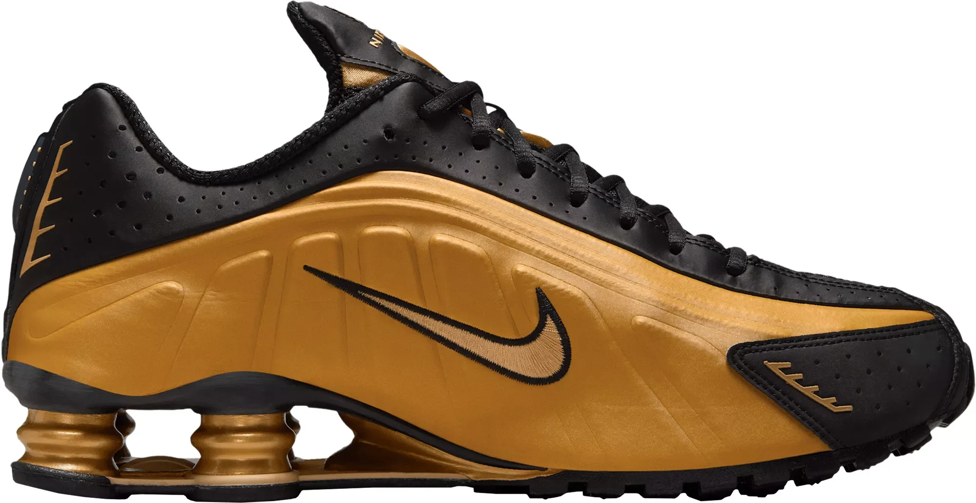 A recrafted version of the early 2000s icon, the Nike Shox R4 replicates the original with its futuristic design lines and performance-like cushioning. Nike Shox columns in the heel distribute weight to maximize comfort while providing a bold look on the streets. Design Synthetic and textile upper is soft and durable In-Shoe Comfort Nike Shox technology features resilient, flexible columns that compress and regain shape for outstanding cushioning Laser perforations throughout provide ventilation Foam midsole Durability & Traction Modified, circular Waffle outsole offers great traction Rubber outsole