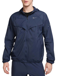 Using insights from runners like you, Nike prioritized functionality to refresh its Stride essentials. Lightweight and water-repellent, this UV-blocking jacket packs into its own pocket, helping you stay ready for any weather. Fit & Design: Standard fit jacket Smooth nylon shell is super lightweight Packs down into its side pocket for convenient storage on the go Raglan sleeves are designed to help reduce underarm chafing and allow for a wider range of motion Updated adjustable hood design gives a secure, personalized feel Vents on the front and back of the jacket provide extra breathability in key areas Mesh-lined pockets help keep your essentials dry Reflective pills on the back Reflective Swoosh logo Technology: Water-repellent finish on nylon shell helps you stay dry in wet weather Blocks areas covered by the garment from UV rays, giving you protection in sunny conditions Additional Details: Not intended for use as Personal Protective Equipment (PPE) To protect exposed areas, the use of good quality sunscreen is recommended