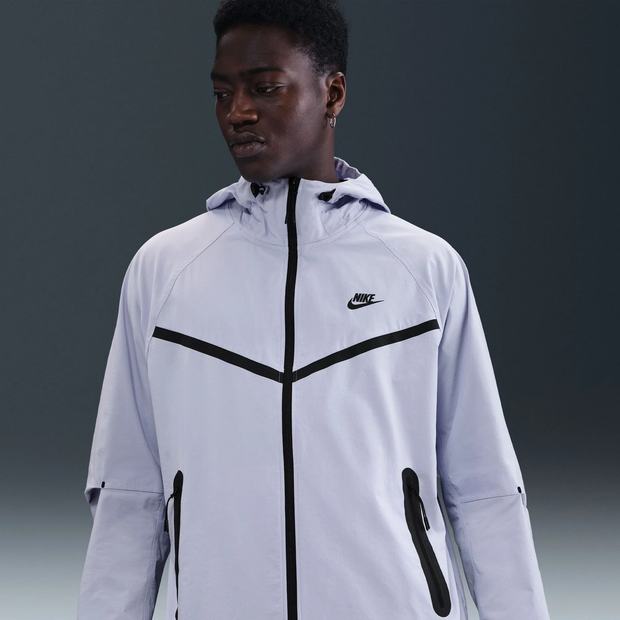 Crafted with stretchy, breathable material, the Nike Tech Woven Jacket offers you ease of movement and adjustable details. Bungee cords with cord locks create a custom fit at the hem and hood. Fit & Design: Loose fit through the body allows a full range of movement Lightweight fabric moves sweat away from your skin for quick evaporation, helping you stay dry and comfortable Hood and stand collar offer coverage from the elements Bungee cords with cord locks create a custom fit at the hem and hood Articulated elbows are made with movement in mind, and add a distinct Nike Tech aesthetic Two-way zipper lets you adjust your fit Nike Futura logo