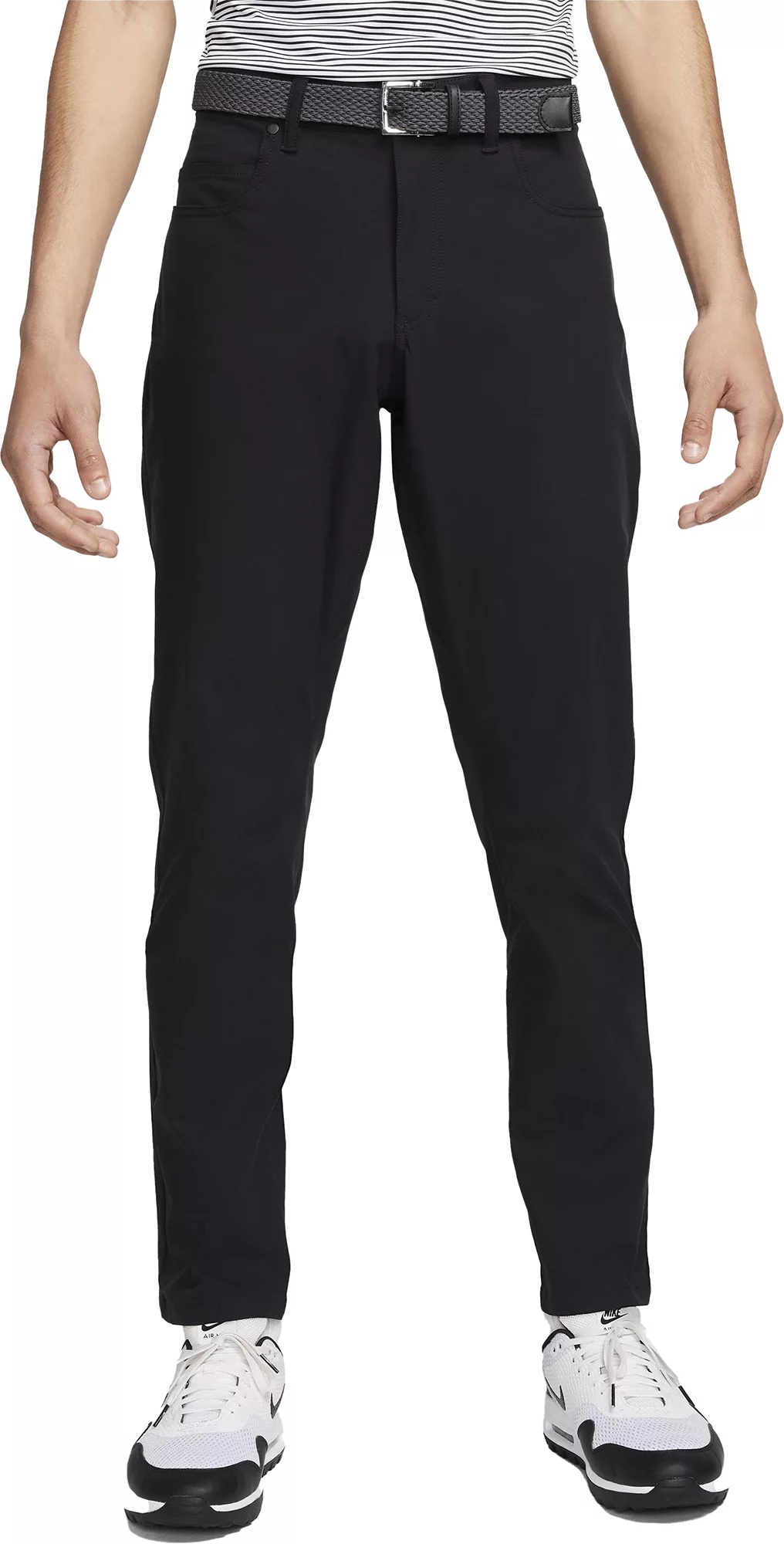 Fit & Design: Slim fit with a smooth, stretchy feel Anti-wrinkle 4-way stretch-woven fabric lets you get the most out of your swing Elastic waistband with a snap-hook-and-bar closure Features 5 pockets, including 3 in the front and 2 on the back Technology: Nike Dri-FIT technology moves sweat away from your skin for quicker evaporation, helping you stay dry and comfortable Water-repellent finish to help you stay dry in wet conditions Additional Details: