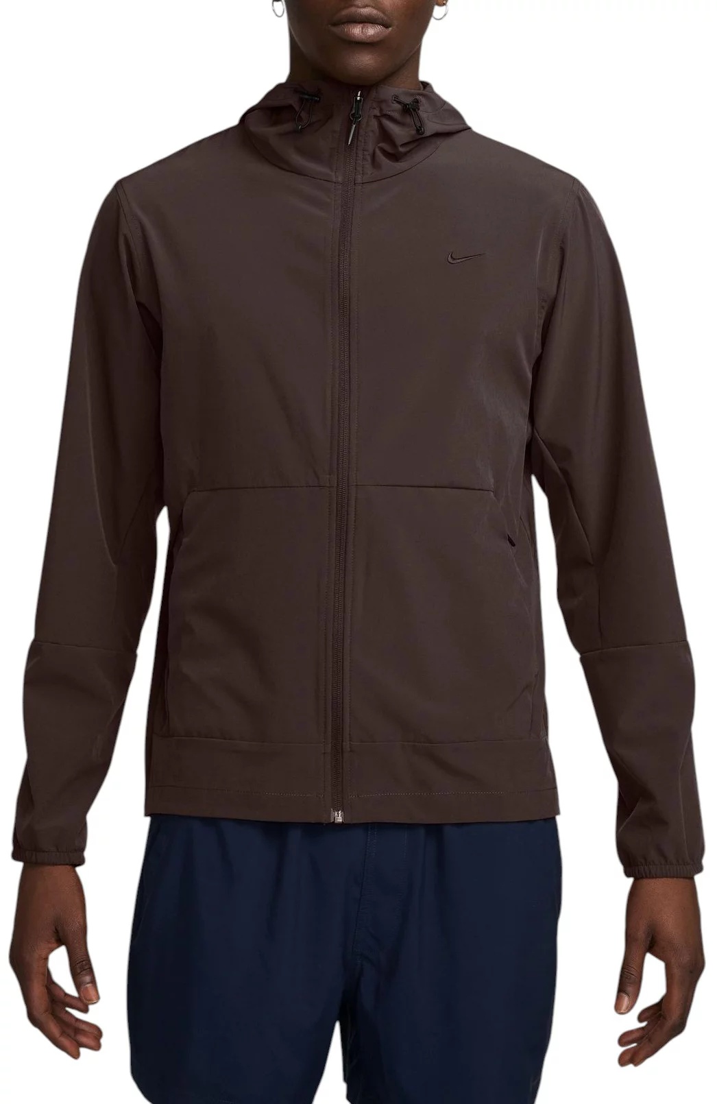 Fit & Design: Hooded with an adjustable drawcord Long sleeves Full-zip design allows you to easily change in and out of the jacket Front pockets provide easy-to-reach storage and keep your hands warm 4-way stretch fabric moves in all directions to keep you comfortable Reflective woven label Packable design transforms into a pouch so you can easily stash it in a bag Technology: Nike® Dri-FIT technology moves sweat away from your skin for quicker evaporation, helping you stay dry and comfortable Made with fabric that repels water to keep you dry