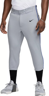 Outfitted with sweat-wicking technology and breathable mesh, the Nike® Boys' Vapor Select 2 Piped High Baseball Pants help manage distractions on the field to keep you at the top of your game each inning. These pants are designed for a relaxed, easy-fit that allow you to move more freely, and its side-seam piping gives you that extra pop of color to match your team uniform. Lightweight Breathability: Dri-FIT® Technology helps you stay dry, comfortable and focused Breathable mesh behind the knees lets cool air in while releasing excess heat Stay-Put Fit: Silicone grips are lined along the elastic waistband to help keep your uniform in place Offset snaps reduce bulk under your belt buckle Additional Details: Standard fit for a relaxed, easy feel Wide belt loops Snap closure includes zip fly Back Pockets Machine Washable