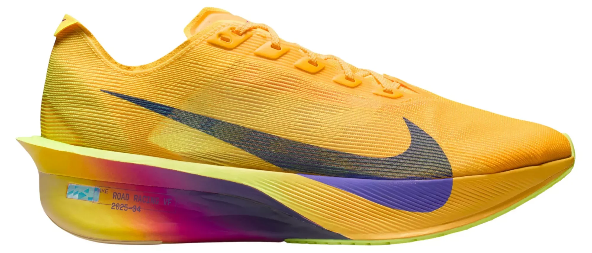 The Vaporfly 4 is a lean, mean, mile-eating machine. Nike® trimmed weight in the midsole, outsole and upper from the Vaporfly 3 without sacrificing performance. The result is a lighter, more propulsive all-around racing shoe that’s trusted from the mile to the marathon. What’s New: A higher angle of the plate and lower heel-to-toe drop compared to the Vaporfly 3 give you an improved propulsive feel Upgraded Nike® ZoomX foam provides even more energy return than before thanks to a slight midsole reduction, giving you a bouncy, feathery feel Nike® reduced the weight of the outsole by using a thinner rubber compared to the Vaporfly 3, eliminating unnecessary thickness Design: Engineered mesh offers improved comfort and a disappearing feel on your foot, reducing the weight of the shoe while supplying a more consistent fit The handwritten number on the midsole salutes the wear-testers who put these shoes through our rigorous test process to give you the best performance possible Reduced weight on the inside of the foot to give you a more stable ride In-Shoe Comfort: A full-length carbon fiber Flyplate provides a propulsive, racing feel ZoomX foam runs heel to toe to give you a springy, bouncy feel Durability & Traction: Waffle outsole pattern with perforations saves weight and delivers multi-surface traction in various weather conditions Additional Details: Heel-to-toe drop: 6 mm