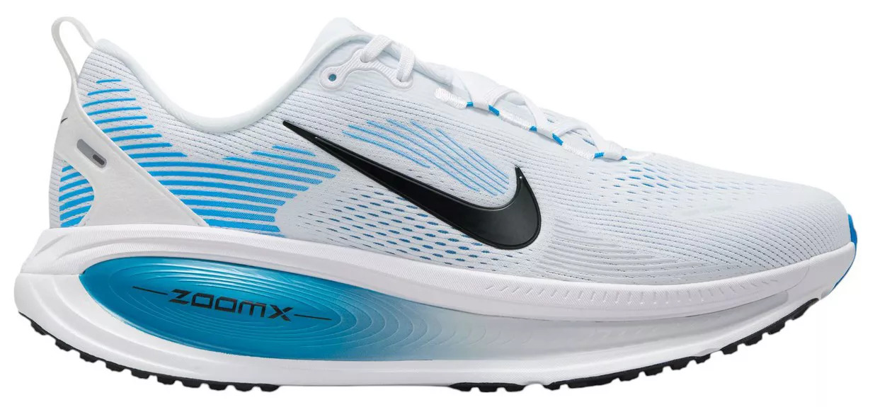 Maximum cushioning in the Vomero provides a comfortable ride for everyday runs. Nike's softest, most cushioned ride has lightweight ZoomX foam stacked on top of responsive ReactX foam in the midsole. Plus, a redesigned traction pattern offers a smooth heel-to-toe transition. What's New: The overstuffed feel of Nike ZoomX and Nike ReactX foam combine for the first time in one midsole: One for durability and response, the other for next-level softness With a 46mm heel stack, the Vomero 18 takes runners to new heights, increasing overall stance by 7mm compared to Vomero 17 A lightweight, breathable mesh upper has been subtly enhanced by small touchpoint of comfort, like the foam collar and padded tongue top The increased rocker allows for a smoother heel-to-toe transition Design: Soft and stretchy engineered mesh upper features zonal breathability and haptic print for added support Plush tongue and lining for a comfortably snug feel MR-10 last for a consistent fit In-Shoe Comfort: Newly stacked foam midsole with premium ZoomX on top of ReactX foam to amplify cushioned comfort Durability & Traction: High abrasion rubber features a new podular design for greater flexibility and traction Pods around the outsole help enhance agility and smoother heel-to-toe transitions Additional Details: Weight: Approx. 325 g/11.5 oz (Men's US 10) Heel-to-toe drop: 10 mm This product was responsibly designed utilizing recycled materials from post-consumer and/or post-manufactured waste