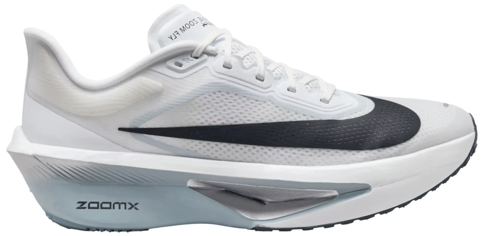 The Zoom Fly 6 is with you every step of your run. Lighter than the Zoom Fly 5, its responsive ZoomX foam adds energy return to each stride, while a carbon fiber Flyplate helps propel you to the finish line. Design: Redesigned upper with two-layer woven mesh system ensures sock-like comfort and ultimate breathability In-Shoe Comfort: Lightweight Nike® ZoomX foam provides energy return in every step Full-length carbon fiber plate increases efficiency and responsiveness Durability & Traction: Thin rubber outsole is lightweight and grippy on the road Additional Details: Heel-to-toe drop: 8 mm