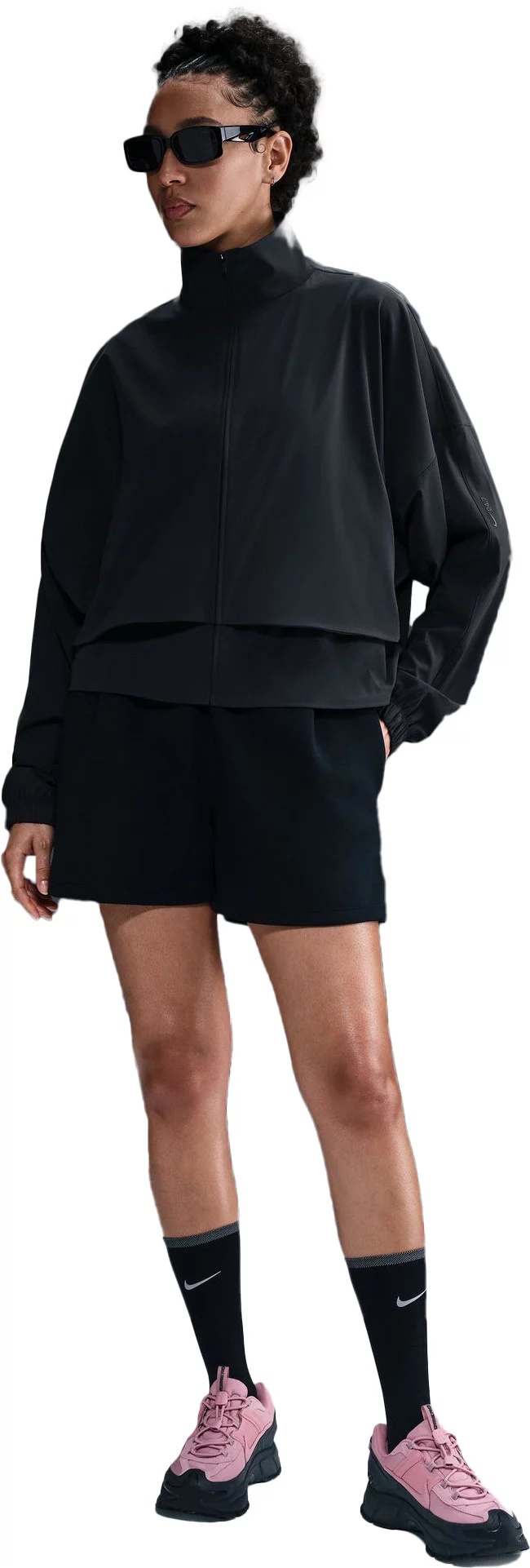 Transitioning from one activity to the next is a breeze in this sleek jacket. Super smooth, with the perfect amount of stretch, this sweat-wicking fabric offers a breathable, comfortable feel so it can go all day. Fit & Design: Oversized fit for a spacious feel Lightweight, woven 4-way stretch PerfectStretch fabric flexes easily and wicks sweat 2 front pockets give you easy access to your essentials Encased elastic cuffs and hem Technology: Nike Dri-FIT technology moves sweat away from your skin for quicker evaporation, helping you stay dry and comfortable