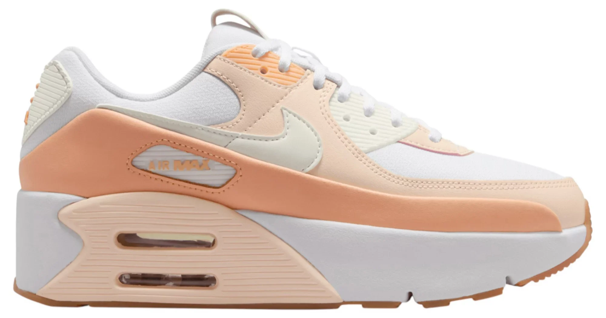Design: Air Max 90 LV8 takes the iconic silhouette to the next level with stacked Nike Air units creating a perfect platform height Layered materials in washed neutrals add texture and dimension Upper mixes leather, textile and suede for a layered look built to last In-Shoe Comfort: Visible Nike Air units are stacked on top of each other for a platform look with plenty of cushioning Padded, low-cut collar Durability and Traction: Rubber Waffle outsole delivers durable traction and heritage style