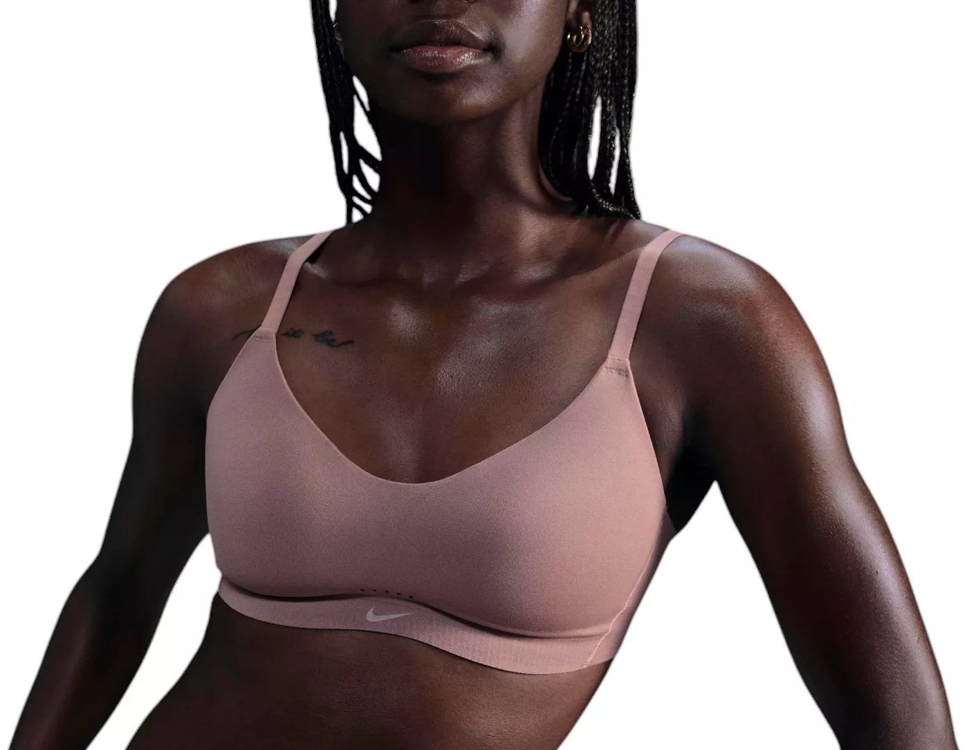 Unbelievably soft and impossibly lightweight, the Alate Minimalist delivers effortless comfort. Light support gives you a gentle hold while stretchy, sewn-in padding offers subtle shaping and coverage. A low-profile design and convertible, adjustable straps work for you and your outfit all day, every day. Fit & Design: Supersoft, stretchy pads that are fixed into the bra help keep everything in place while you move The hourglass shape between the cups separates them and adds breathability With just the right amount of stretch and flexibility while you're wearing it, the bra recovers and maintains its shape in between wearings so you get the perfect fit every time Impossibly lightweight and lightly brushed, the soft, stretchy fabric contours to your natural shape and feels like it’s barely there Supersoft inner mesh enhances the light, breathable feeling Nike Dri-FIT technology moves sweat away from your skin for quicker evaporation, helping you stay dry and comfortable Perforations at center front add breathability in high-heat area Hook-and-eye closure
