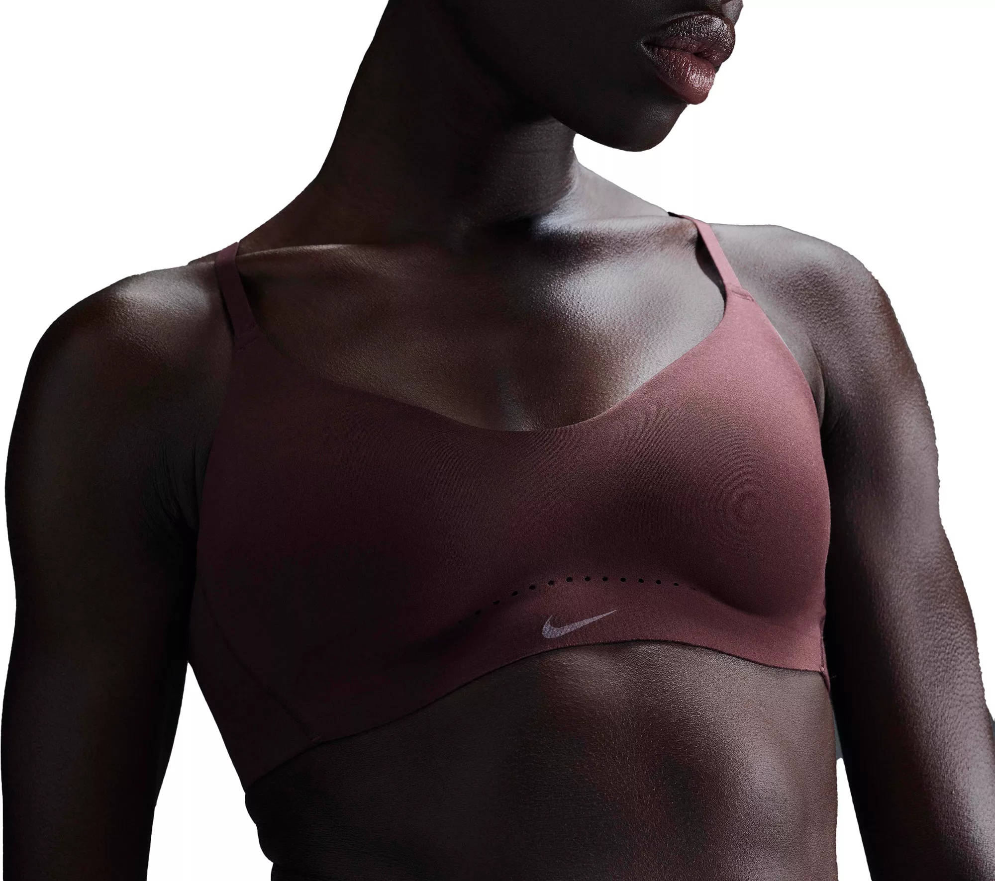 Unbelievably soft and impossibly lightweight, the Alate Minimalist delivers effortless comfort. Light support gives you a gentle hold while stretchy, sewn-in padding offers subtle shaping and coverage. A low-profile design and convertible, adjustable straps work for you and your outfit all day, every day. Fit & Design: Supersoft, stretchy pads that are fixed into the bra help keep everything in place while you move The hourglass shape between the cups separates them and adds breathability With just the right amount of stretch and flexibility while you're wearing it, the bra recovers and maintains its shape in between wearings so you get the perfect fit every time Impossibly lightweight and lightly brushed, the soft, stretchy fabric contours to your natural shape and feels like it’s barely there Supersoft inner mesh enhances the light, breathable feeling Nike Dri-FIT technology moves sweat away from your skin for quicker evaporation, helping you stay dry and comfortable Perforations at center front add breathability in high-heat area Hook-and-eye closure