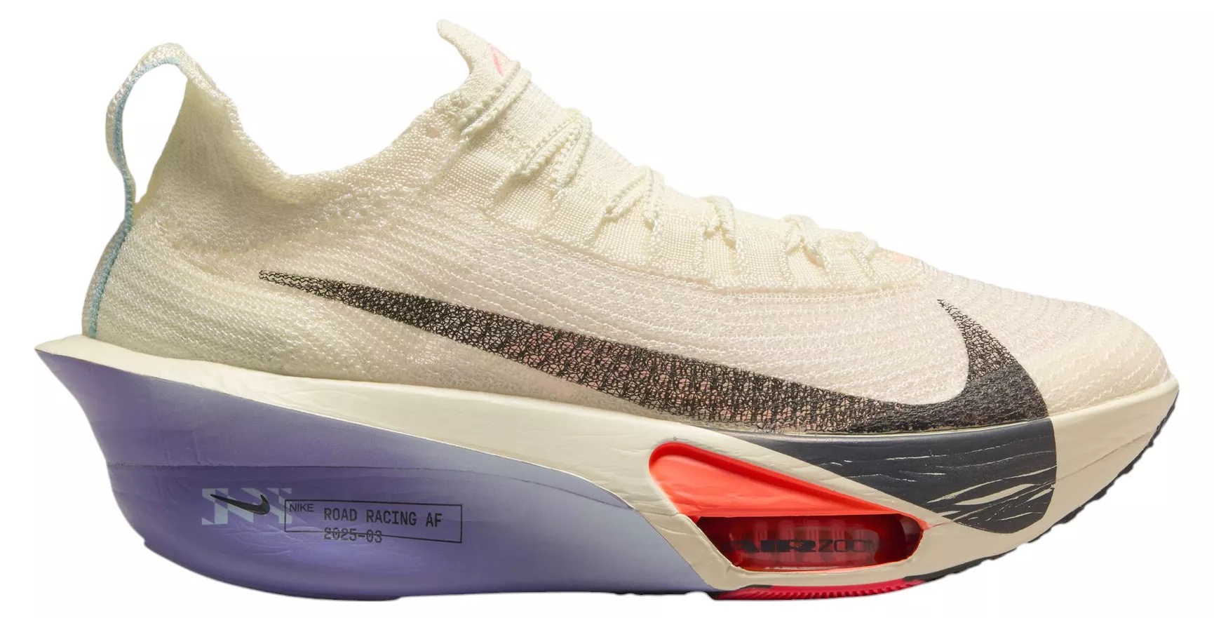 Fine-tuned for marathon speed, the Alphafly 3 helps push you beyond what you thought possible. Three innovative technologies power your run: A double dose of Air Zoom units helps launch you into your next step; a full-length carbon fiber plate helps propel you forward with ease; and a heel-to-toe ZoomX foam midsole helps keep you fresh from start to 26.2. Time to leave your old personal records in the dust. Design: All-new Atomknit upper designed for improved multidirectional containment and breathability Full-length carbon fiber plate delivers a propulsive sensation Notched laces offer a secure but soft lace-up In-Shoe Comfort: Integrated knit tongue with lofted padding helps alleviate lace pressure Two forefoot Air Zoom units combine with ZoomX foam to store and return the energy back to you, powering every step Fully connected ZoomX foam creates an ultralight and cushioned feel, helping you stay fresh and comfortable from mile 1 to 26.2 Additional Details: Weight: 174g / 6.1 oz (Women’s size 8) Heel-to-toe drop: 8mm