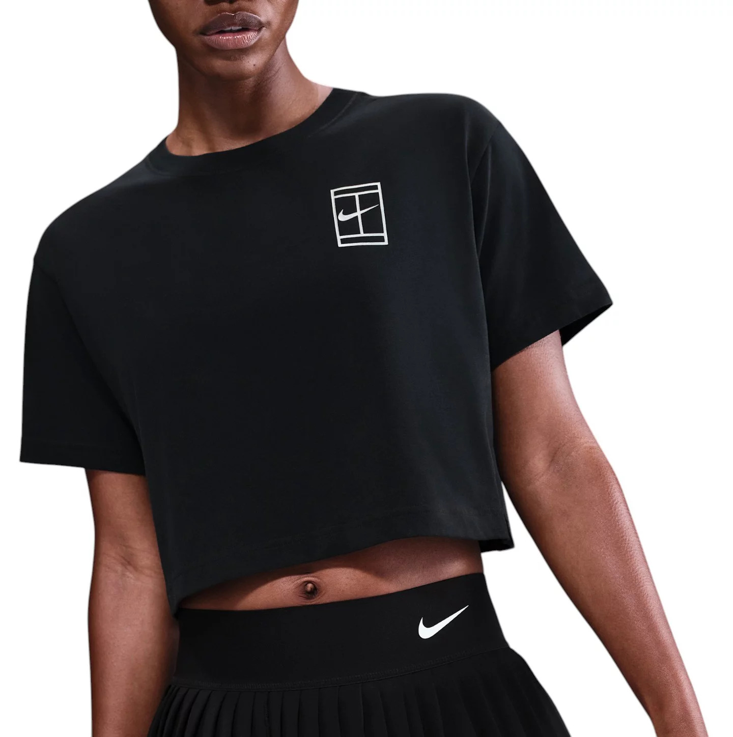 Hit the tennis court in this roomy graphic tee. Its soft cotton blend fabric has Nike Dri-FIT tech that moves sweat away from your skin for quicker evaporation, helping you stay dry and comfortable. Fit & Design: Short sleeve Crewneck Cropped Roomy fit Soft, cotton blend fabric Technology: Nike Dri-FIT tech that moves sweat away from your skin for quicker evaporation, helping you stay dry and comfortable Additional Details: Machine wash