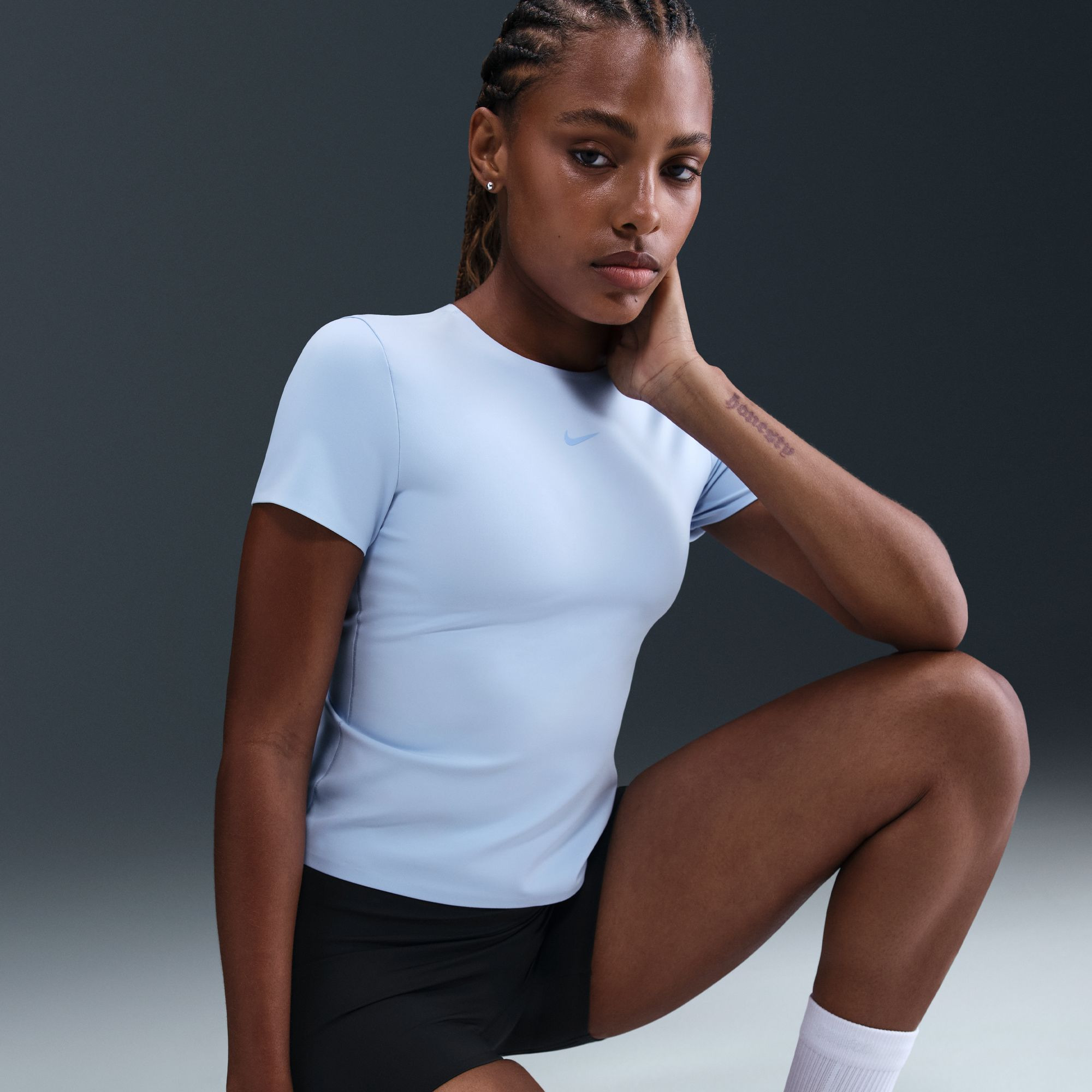 Show off your form—not your sweat. Designed with Stealth Evaporation technology, this fitted top conceals moisture to help you stay looking fresh. Midweight, ultrasoft fabric offers smooth coverage so the only thing that shines through is your confidence. Fit & Design: Tight fit: snug and form-fitting Bonded seams add durability and a clean finish Silicone Swoosh logo at center chest Technology: Nike Stealth Evaporation technology helps reduce sweat marks by dispersing moisture so the fabric dries quickly and stays looking fresh Additional Details: Made from sustainable materials