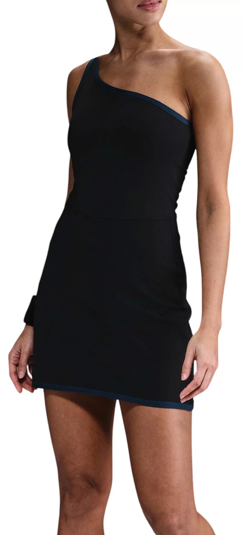 Nike One works for it all. This slim-fitting dress is made with midweight, peachy-soft fabric that dries quickly and stretches with you. With a shelf bra liner and built-in shorts, you can move with confidence and coverage—whatever the activity may be. Fit & Design: Slim fit: sleek and tailored Internal shorts have a drop-in side pocket that fits most phones Taping adds definition and contrast Reflective Swoosh logo at center back Drop-in side pocket on right thigh Shelf bra liner Technology: Nike Dri-FIT technology moves sweat away from your skin for quicker evaporation, helping you stay dry and comfortable Additional Details: Made from sustainable materials Model is wearing size S and is 5'9?/175cm