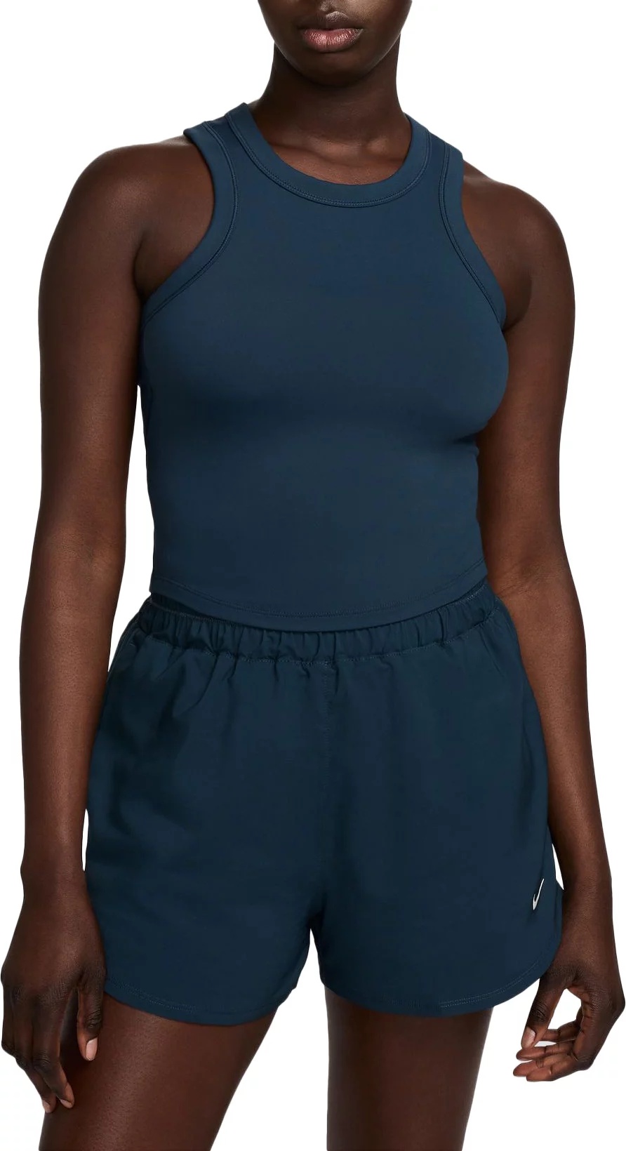 Up for a workout or down to chill, this Nike One tank top is ready for whatever you are. Its midweight, peachy-soft fabric dries quickly and stretches with your every move. Slightly cropped and snug, it's ready to meet your favorite high-waisted leggings for a head-to-toe look that you can feel confident and comfortable in from your morning stroll to your evening wind-down—and at all the stops in between. Fit & Design: Nike Dri-FIT technology moves sweat away from your skin for quicker evaporation, helping you stay dry and comfortable High neckline with racerback is designed to cover traditional sports bras Reflective heat transfer Swoosh logo at center back Binding at the neckline and arm openings give the tank a refined finish A curved hem and elegant seam lines throughout the design keep the look polished, so you can wear it as the first layer—or the only layer Tight fit: snug and form-fitting