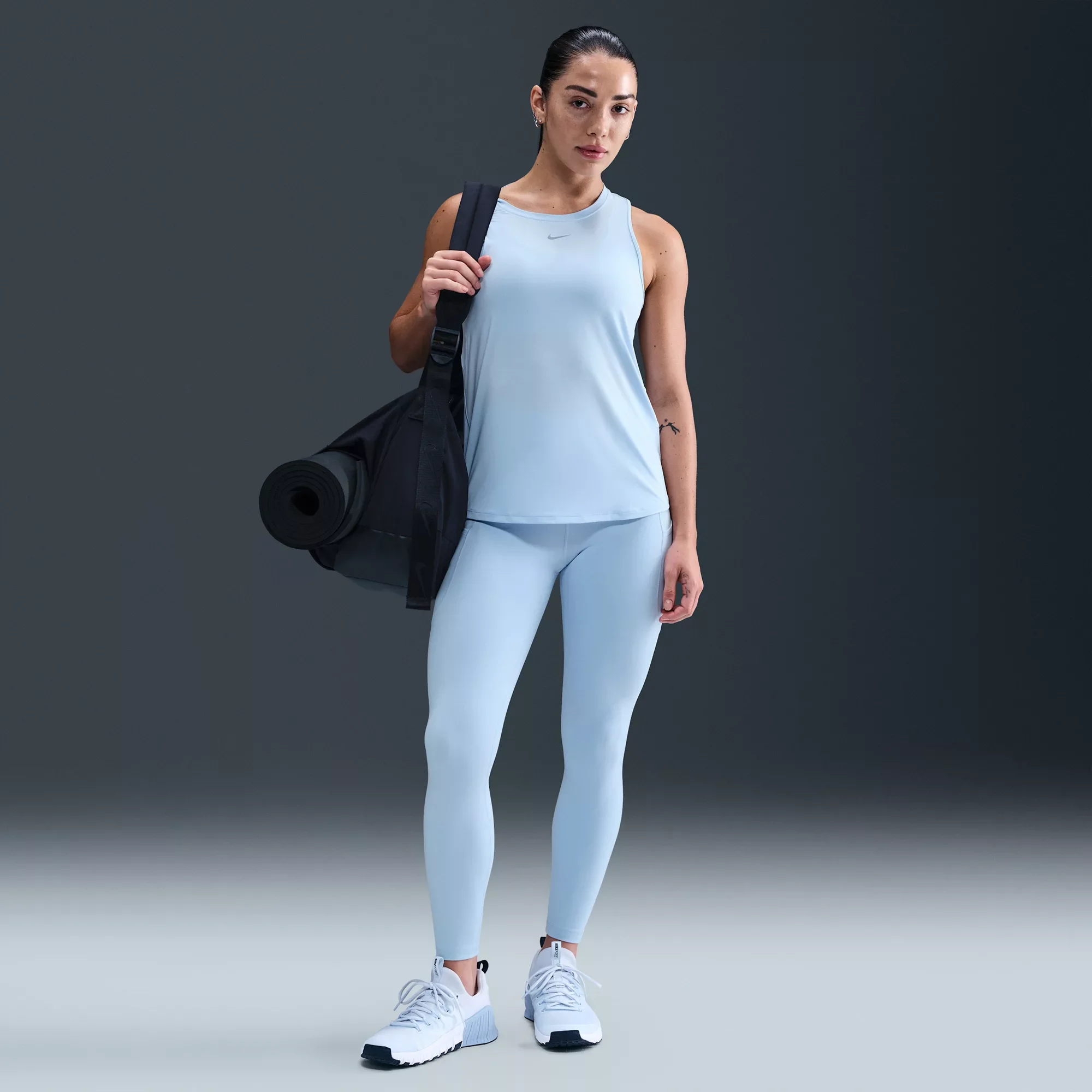 Up for a workout or down to chill, these leggings are the Ones that are ready for whatever you are. Their midweight, peachy-soft fabric stretches with your every move and dries quickly. Plus, a high waist is designed to meet your favorite cropped tops for a head-to-toe look that you can feel confident and comfortable in all day long. Fit & Design: Tight fit: snug and form-fitting Gentle support: feels like a soft hug with plenty of freedom 7/8 length: hits at ankle High-Waisted: sits at or above your natural waist for more coverage Non-sheer fabric and a high waist help keep your butt covered no matter how deep you bend and stretch Fewer seams make for a smooth, flattering fit Nike Dri-FIT technology moves sweat away from your skin for quicker evaporation, helping you stay dry and comfortable The waistband is lined with mesh for a stay-put design that's extra supportive A drop-in pocket in the back of the waistband is large enough to hold your smartphone External thigh pockets let you keep more essentials close