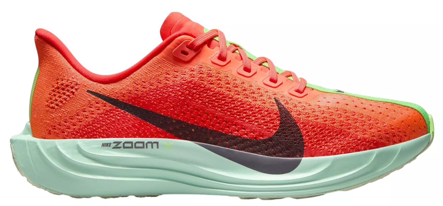 Take responsive cushioning to the next level with the Pegasus Plus. It energizes your ride with full-length, superlight ZoomX foam to give you a high level of energy return for everyday runs. And a stretchy Flyknit upper conforms to your foot for a seamless fit. Design: Flyknit upper is breathable, lightweight and precision-engineered Carefully crafted perforations in the upper reduce the weight of the shoe and make it more breathable Traditional tongue provides a trusted and familiar feel Midfoot band helps keep you contained In-Shoe Comfort: The Plus has the highest energy return in comparison to all of the Pegasus Turbos in history, thanks to a revamped ZoomX midsole that offers springy cushioning for tempos and fast times Durability & Traction: High abrasion rubber along the outsole gives you super traction for all your tempo training needs Additional Details: Not intended for use as Personal Protective Equipment (PPE) Heel-to-toe drop: 10 mm