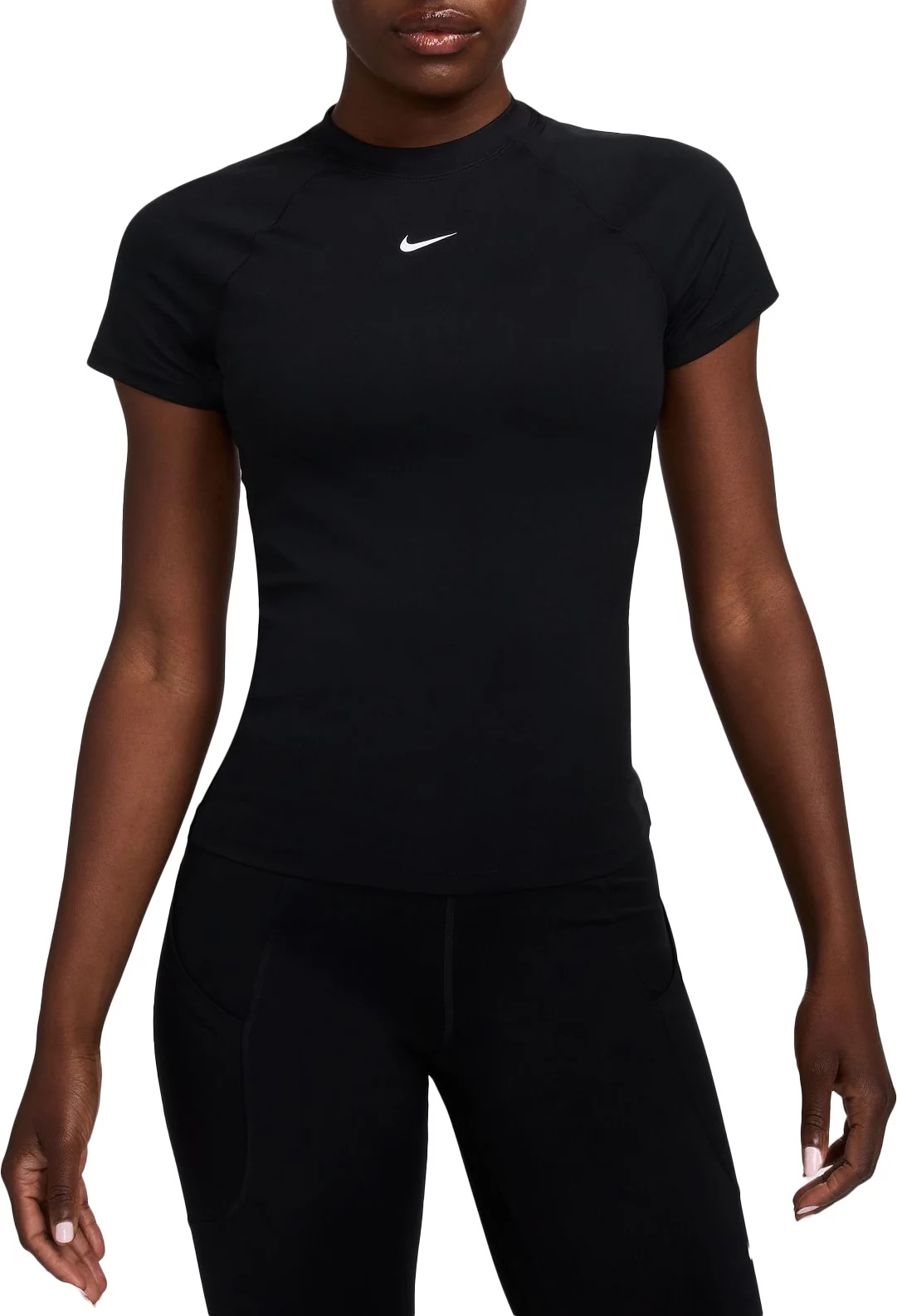 Ready to turn up the heat on your workout? Reach for this fitted short-sleeve top. Lightweight and stretchy, the smooth fabric dries quickly and works with you through every move. Mesh panels under the arms let moisture escape so that finishing strong is no sweat. Fit & Design: Tight fit: snug and form-fitting Lightweight and stretchy fabric Mesh panels under the arms help increase airflow Nike Dri-FIT technology moves sweat away from your skin for quicker evaporation, helping you stay dry and comfortable
