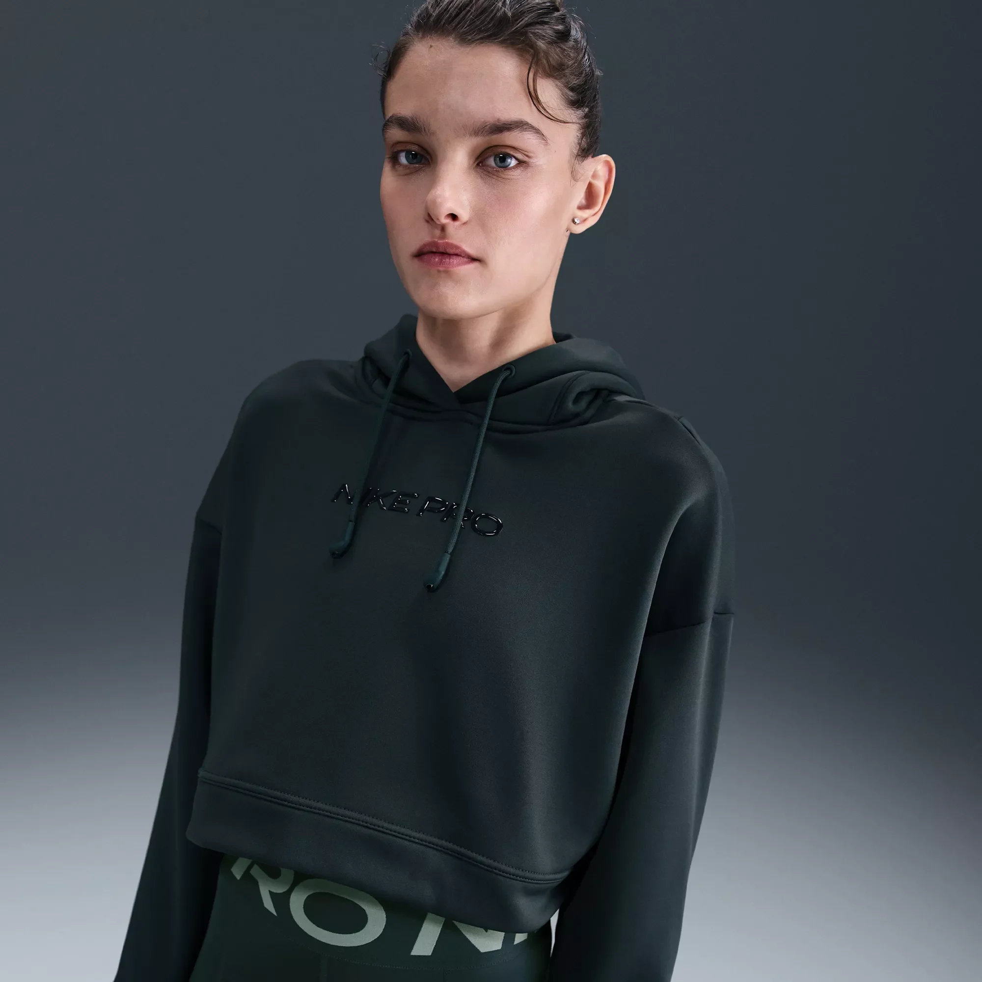 Warm up and work out in this spacious, heat-regulating hoodie. Soft and stretchy fabric feels cozy thanks to its supersmooth face on the outside and soft brushed face on the inside. Silicon drawcord tips provide a place to hold your earbuds. Fit & Design: Oversized fit: exaggerated and spacious Inspired by pump covers, the Nike Pro elastic on the back hem pulls up for ventilation and style Its specially designed drawcord with silicone holders at the ends can store certain earbuds Swoosh logo on sleeve Nike Pro branding at chest Thumbholes on sleeves Technology: Nike Therma-FIT technology helps manage your body’s natural heat to help keep you warm in cold-weather conditions Additional Details: Made from sustainable materials