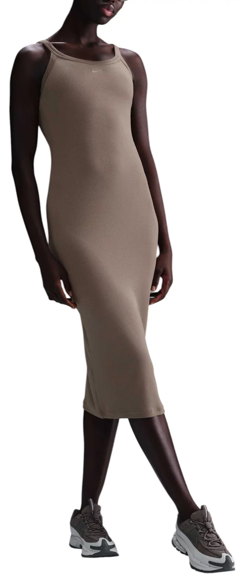 Fit & Design: Body-skimming dress Made with soft, mini-ribbed fabric to elevate a classic piece Straps flow into a curved neckline help keep a minimalist look Soft mini-ribbed jersey is stretchy with a slight drape, making it perfect for everyday wear Embroidered Swoosh logo on chest