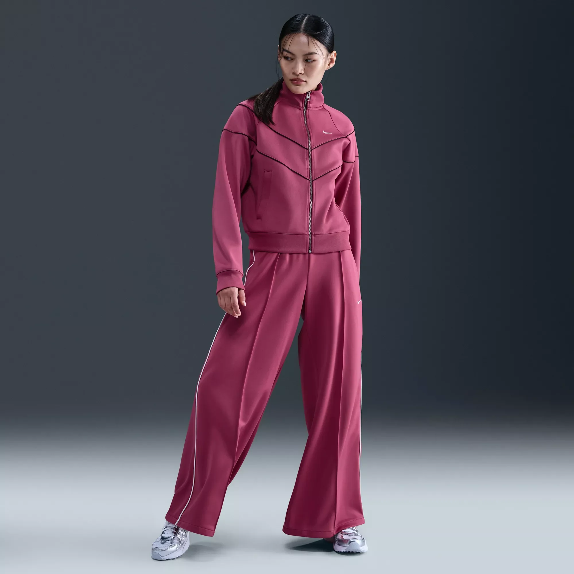 We're reimagining classic track pants. Midweight knit and super wide legs combine to bring effortless drape to your look. Fit & Design: Loose fit Wide legs Interior drawstring at waist Pockets Embroidered Swoosh logo