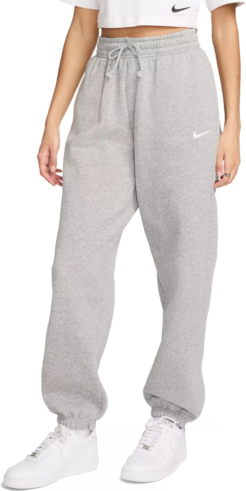 Grounded in style, comfort and versatility, meet Nike's take on luxury loungewear. Whether you're running errands or rewatching your favorite show, these midweight fleece sweats feel extra soft on the inside to help keep you cozy. The oversized fit is intended to sit high on your hips for comfort and a stay-put feel. Fit & Design: Oversized fit: exaggerated and spacious Full length: hits below ankle Encased elastic waistband and drawstrings ensure a fit that feels just right Pockets provide quick storage for keys, phone and cold hands Embroidered Swoosh logo on left leg