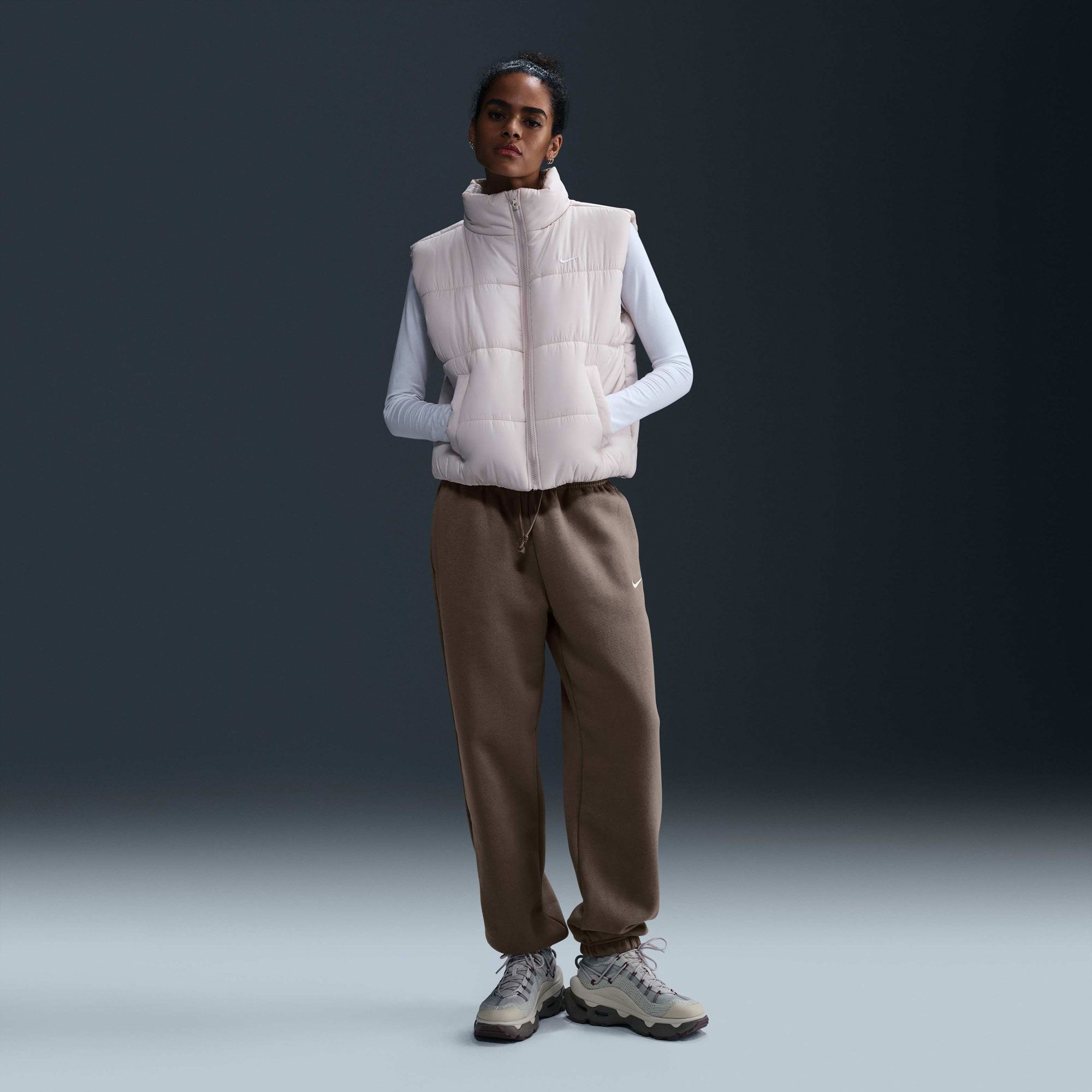 Grounded in style, comfort and versatility, meet Nike's take on luxury loungewear. Whether you're running errands or rewatching your favorite show, these midweight fleece sweats feel extra soft on the inside to help keep you cozy. The oversized fit is intended to sit high on your hips for comfort and a stay-put feel. Fit & Design: Oversized fit: exaggerated and spacious Full length: hits below ankle Encased elastic waistband and drawstrings ensure a fit that feels just right Pockets provide quick storage for keys, phone and cold hands Embroidered Swoosh logo on left leg