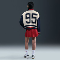 A sport-inspired classic, this cardigan pairs a varsity look with a cozy feel. Chunky knit gives you volume and drape while feeling soft and comfortable against your skin. Fit & Design: Oversized fit: exaggerated and spacious 2-way zipper gives you extra versatility when styling Dropped shoulders and extra room through the body Striped ribbing at neck, hem and cuffs Embroidered Swoosh logo Additional Details: Hand wash