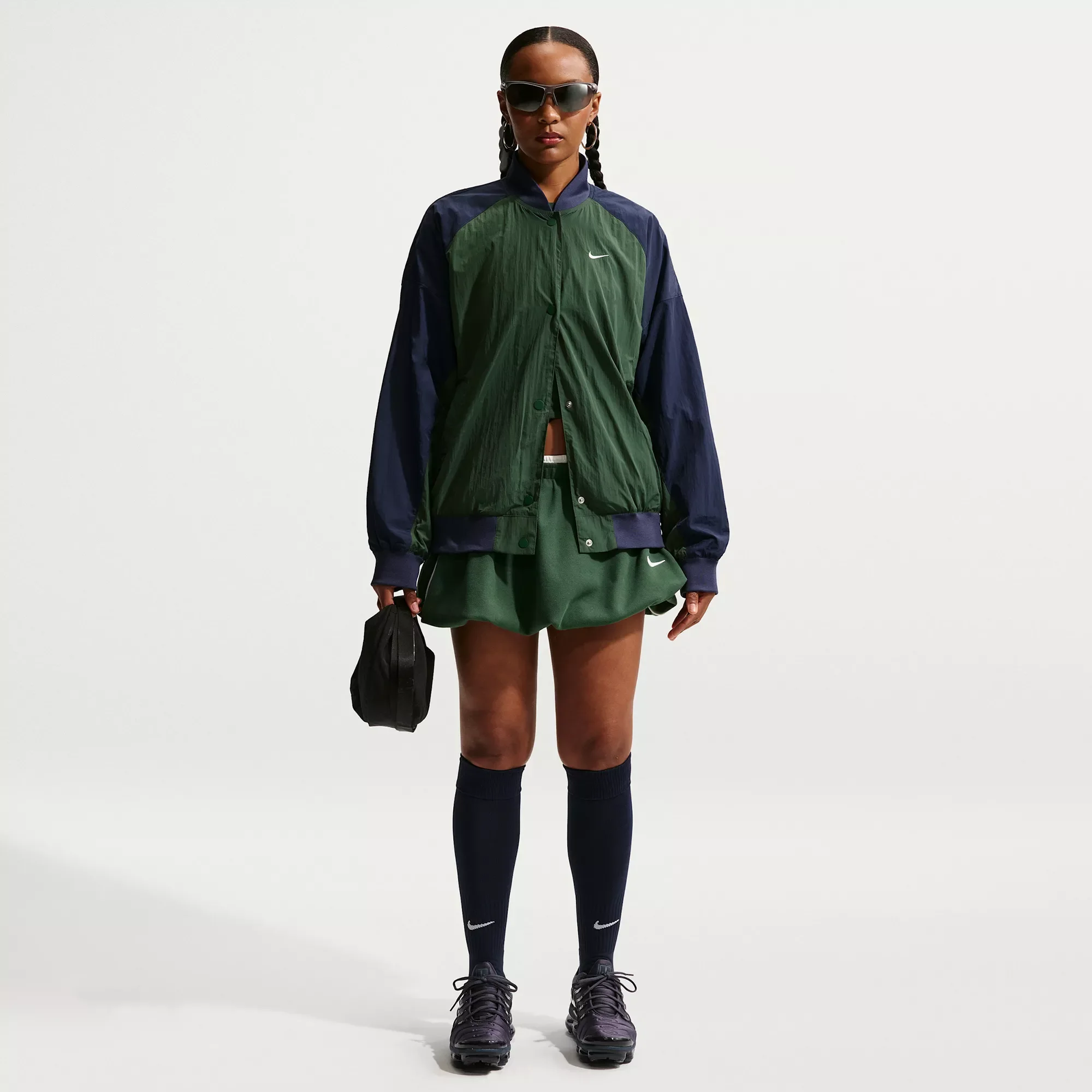 Fit & Design: Oversized fit Pockets Ribbed tapered neck band Ribbed cuffs and hem Embroidered Swoosh logo Lightweight woven taffeta Snap closure
