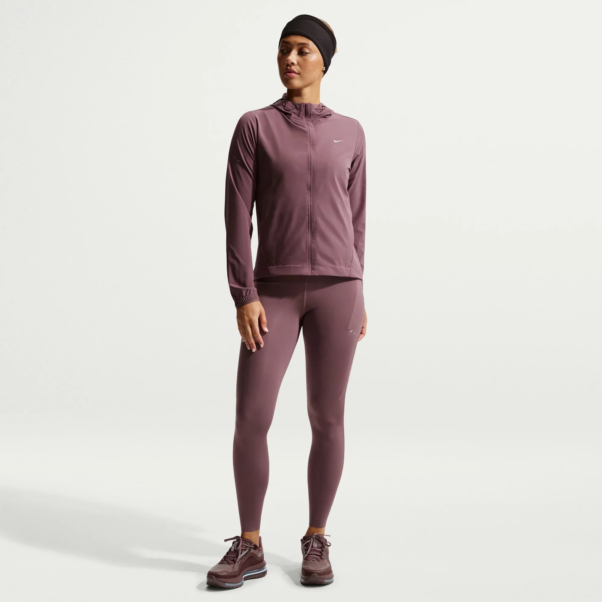 Using insights from runners like you, Nike prioritized functionality to refresh their Swift essentials. This lightweight, packable jacket has been designed to help reduce chafing and improve breathability. A whistle at the collar is easy to access, and a water-repellent finish and built-in UV protection help keep you covered come rain or shine. Fit & Design: Standard fit: easy and traditional Modified raglan sleeves are designed to help reduce underarm chafing and allow for a wider range of motion Adjustable closures at the hem and hood let you personalize your fit A vent on the back is lined with mesh to help moisture escape Water-repellent finish helps keep you dry in wet weather Built-in UV protection helps keep you covered in sunnier conditions Two zippered pockets secure your essentials When it's time to shed a layer, the jacket can pack into a pocket Reflective Swoosh logo on left chest Reflective graphics on sleeves and back Technology: Nike Dri-FIT technology moves sweat away from your skin for quicker evaporation, helping you stay dry and comfortable Additional Details: Made from sustainable materials