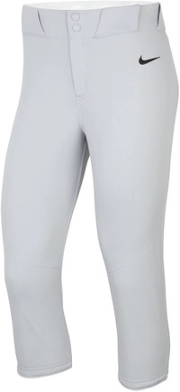 Step up your game with the Nike Women’s Vapor Select 2 Softball Pants. Designed with a tailored fit and breathable knit fabric, these pants ensure you stay cool and comfortable during intense plays. The grip around the waistband and cuffs keeps them securely in place, letting you focus on making those game-winning moves. Cover every inch of the field as you comfortably dive and slide this season wearing the Nike® Women’s Vapor Select 2 Softball Pants. These tailored-fitted pants feature key performance articulations and are constructed of a breathable knit fabric, allowing you to make quick bursts and changes in direction without feeling restricted. Athletic Fit and Feel: Tailored fit responds to your movements for minimal on-field distractions Breathable knit fabric enhances breathability while improving thermo-regulation Grip around the waistband and cuffs to help hold them in place during all-out play Key Performance Integrations: Strategic ventilation behind the knee accelerates airflow to keep your legs cool Double layered knee delivers key reinforcement when executing slides Forward facing side-seams minimize friction for added comfort Elastic waistband with belt loops helps keep your uniform in place while stretchy cuffs grip your legs for a stay-put fit. Zip fly with snap-button closure helps reduce bulk under your belt buckle. ADDITIONAL DETAILS: