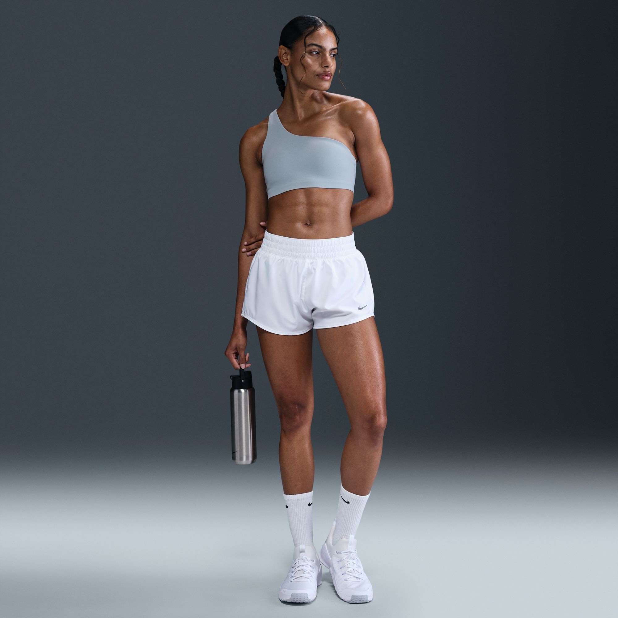 Balance your day in comfort in this asymmetrical Zenvy sports bra. Its lightweight InfinaSoft fabric gives you softness that you can feel with every bend, stretch and shift. Impact Level Light support gives you a gentle hold with plenty of freedom Fit & Design Fitted women’s sports bra Asymmetrical, non-adjustable shoulder strap Two sewn-in pads resist shifting for reliable coverage Nike Swoosh at back Technology Nike Dri-FIT technology moves sweat away from your skin for quicker evaporation, helping you stay dry and comfortable Additional Details Machine wash
