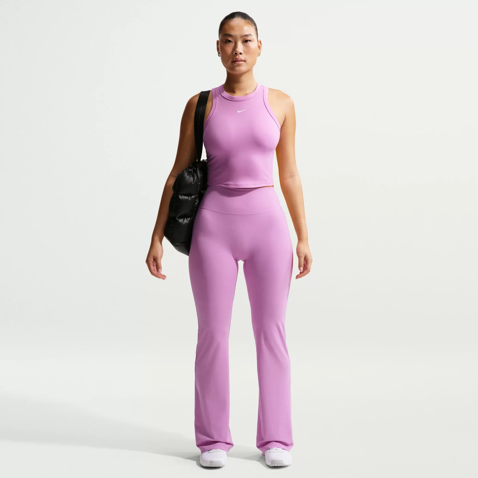 Bend and stretch in total confidence. Still lightweight, our updated InfinaSoft fabric is now ultrasoft with stretch designed to recover its shape wear after wear. Fit & Design: Tight fit: snug and form-fitting Full length: hits below ankle Slightly raised waistband for a true high-waisted fit No front seam helps keep the fabric from riding up, giving you a smooth fit and seamless look Hidden pocket at the back of the waistband fits most phones Swoosh logo on back waistband Technology: Nike Dri-FIT technology moves sweat away from your skin for quicker evaporation, helping you stay dry and comfortable