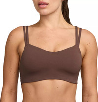 Feel calm and confident all day long in this strappy, gently supportive bra. A sewn-in 1-piece pad offers enhanced coverage and shaping while sweat-wicking technology helps keep you cool and comfortable. The fabric in the body and straps is lightweight, with softness that you can feel with every bend, stretch and shift. With a rounded V-neck to top it off, the bra has a clean finish that goes with any outfit. Fit & Design: Light support gives you a gentle hold with plenty of freedom that's great for low-impact workouts or all-day comfort Nike Dri-FIT technology moves sweat away from your skin for quicker evaporation, helping you stay dry and comfortable