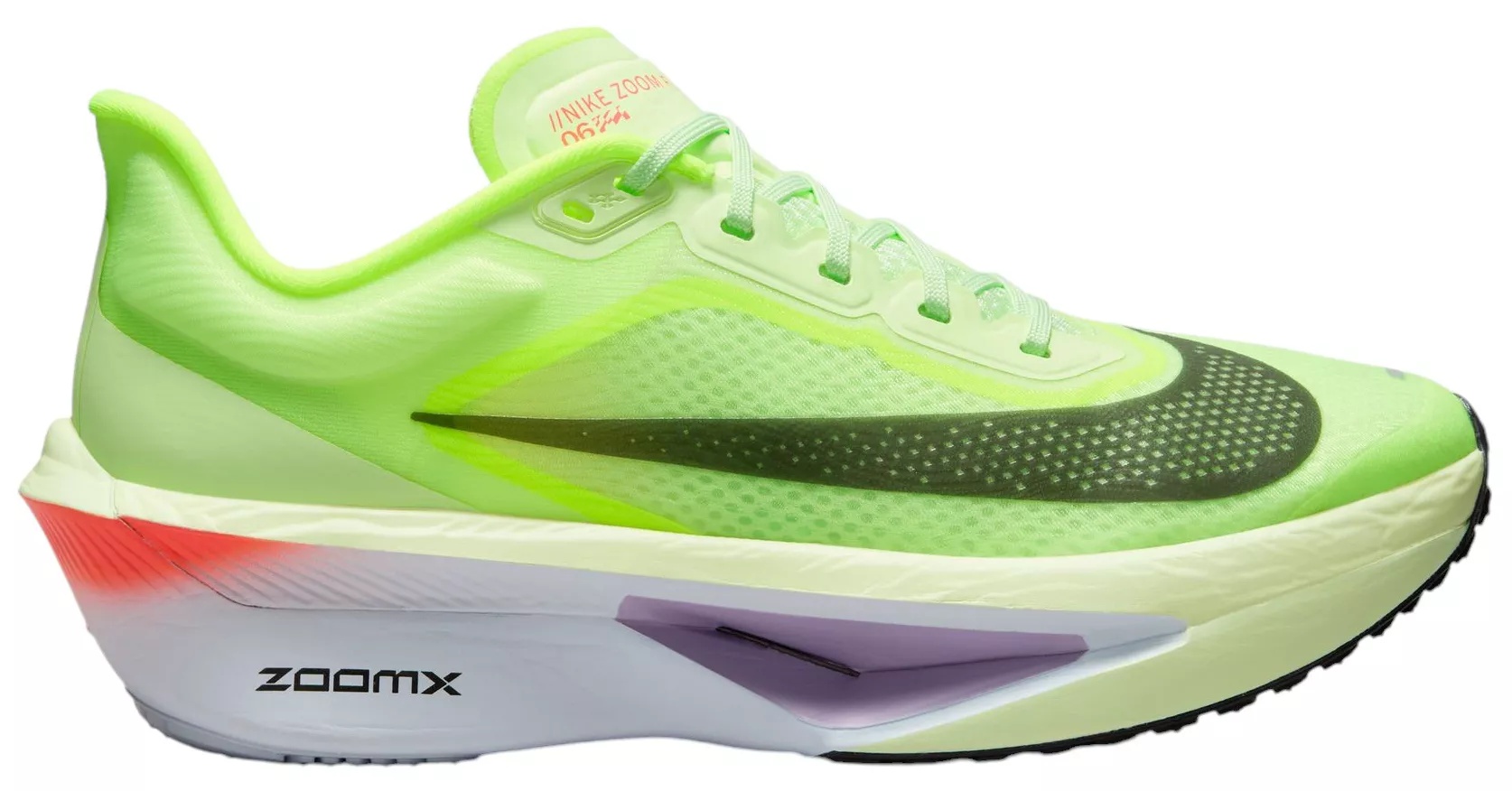 Design: Redesigned upper with two-layer woven mesh system ensures sock-like comfort and ultimate breathability In-Shoe Comfort: Lightweight Nike® ZoomX foam provides energy return in every step Full-length carbon fiber plate increases efficiency and responsiveness Durability & Traction: Thin rubber outsole is lightweight and grippy on the road Additional Details: Weight: Approx. 214 g/7.7 oz (Women's US 8) Heel-to-toe drop: 8 mm