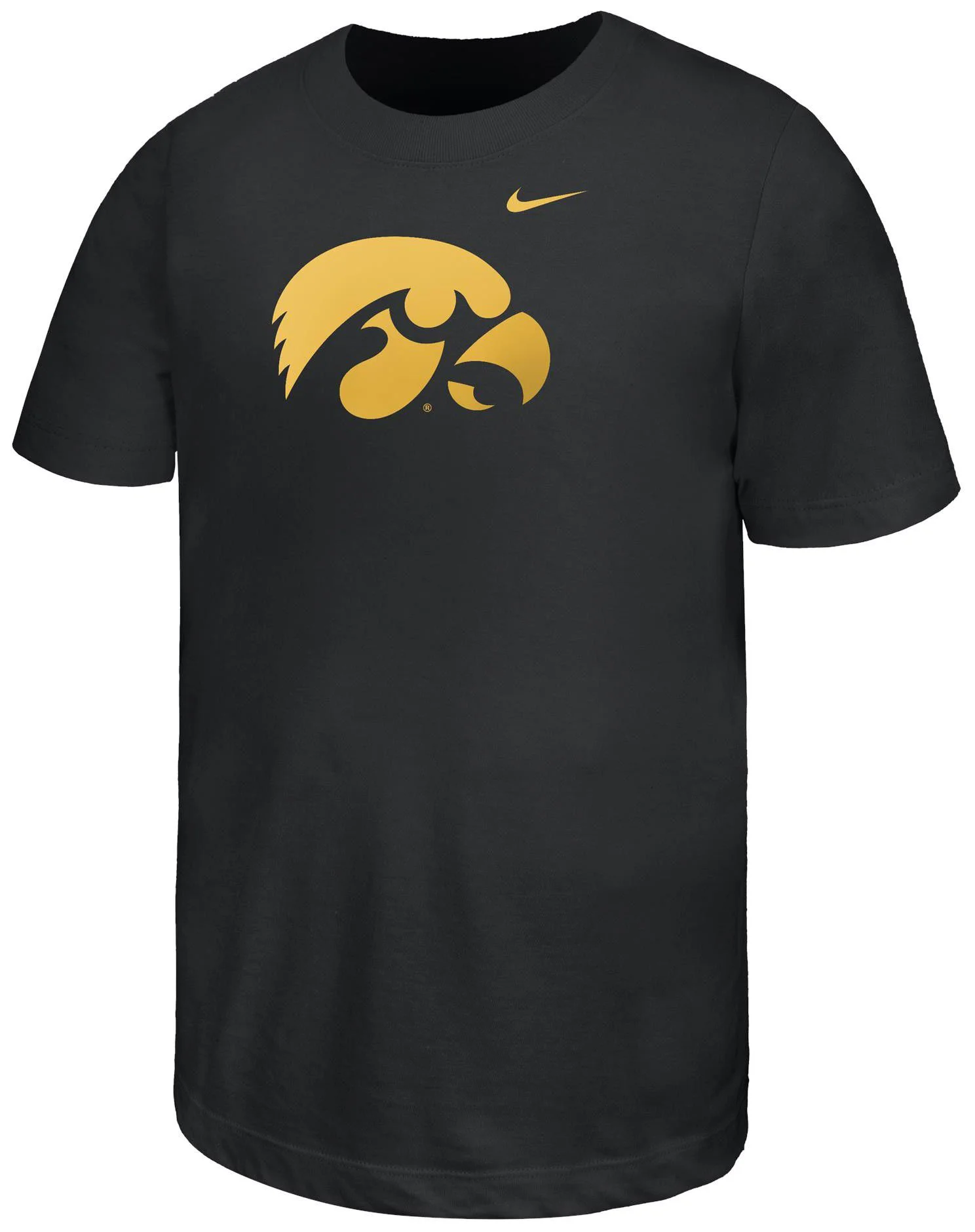 Nike Youth Iowa Hawkeyes Black Core Cotton Primary Logo Short Sleeve T-Shirt