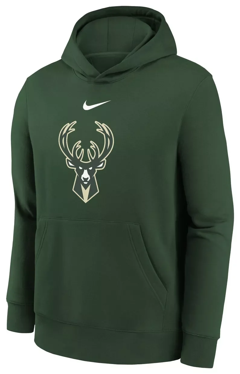 Nike Youth Milwaukee Bucks Green Club Logo Fleece Pullover Hoodie