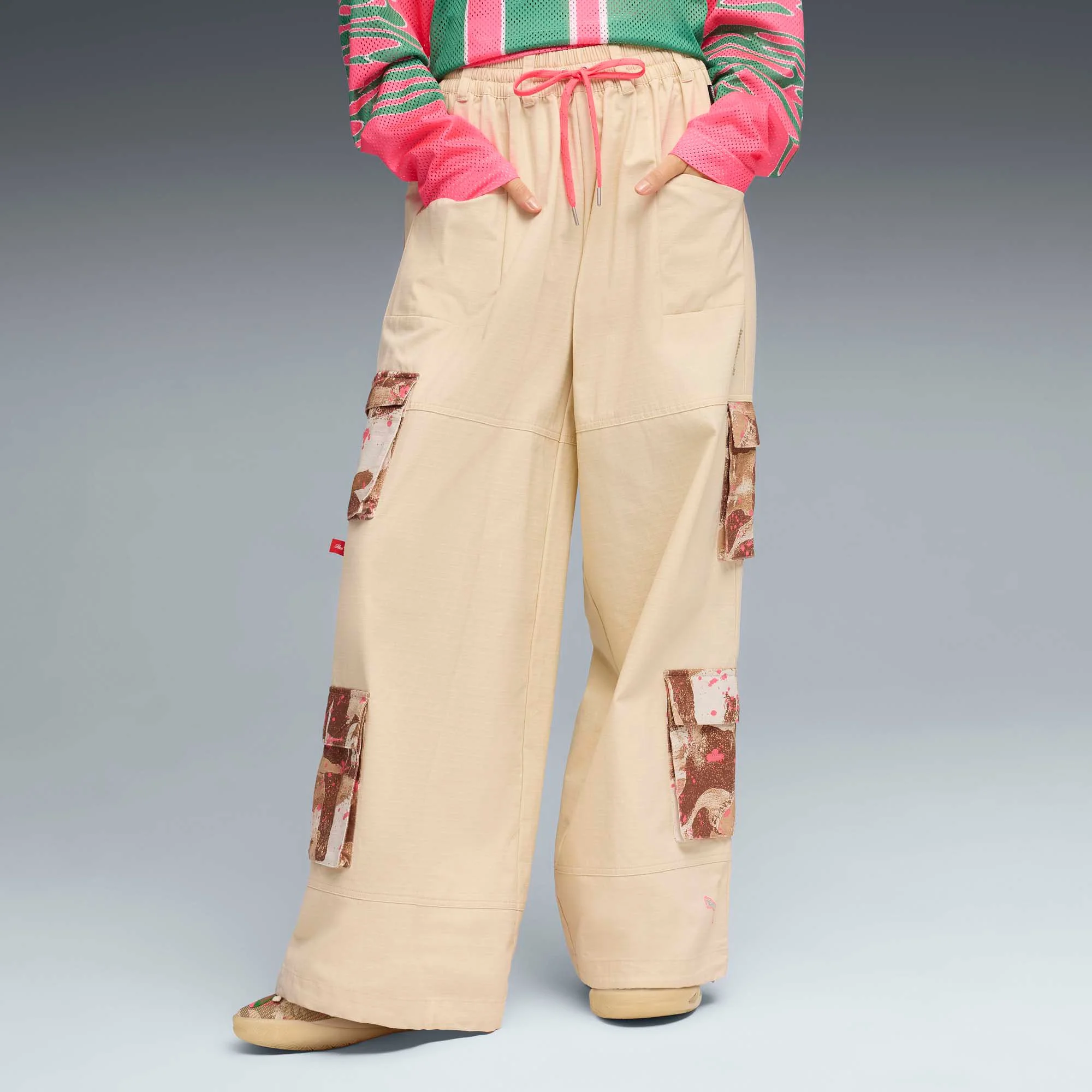 From the hardwood to the stage, Flau’jae commands attention. This apparel collection takes that same presence off-court, blending timeless design with bold personal detail. These cargo pants feature camo printed pockets inspired by her late father, the rapper Camflauge. A crystal logo adds the finishing touch. Fit & Design: Relaxed fit Mid-rise Cargo pockets Regular length PUMA branding details Additional Details: Model is 5’ 9” tall and is wearing size S Made with at least 20% recycled materials